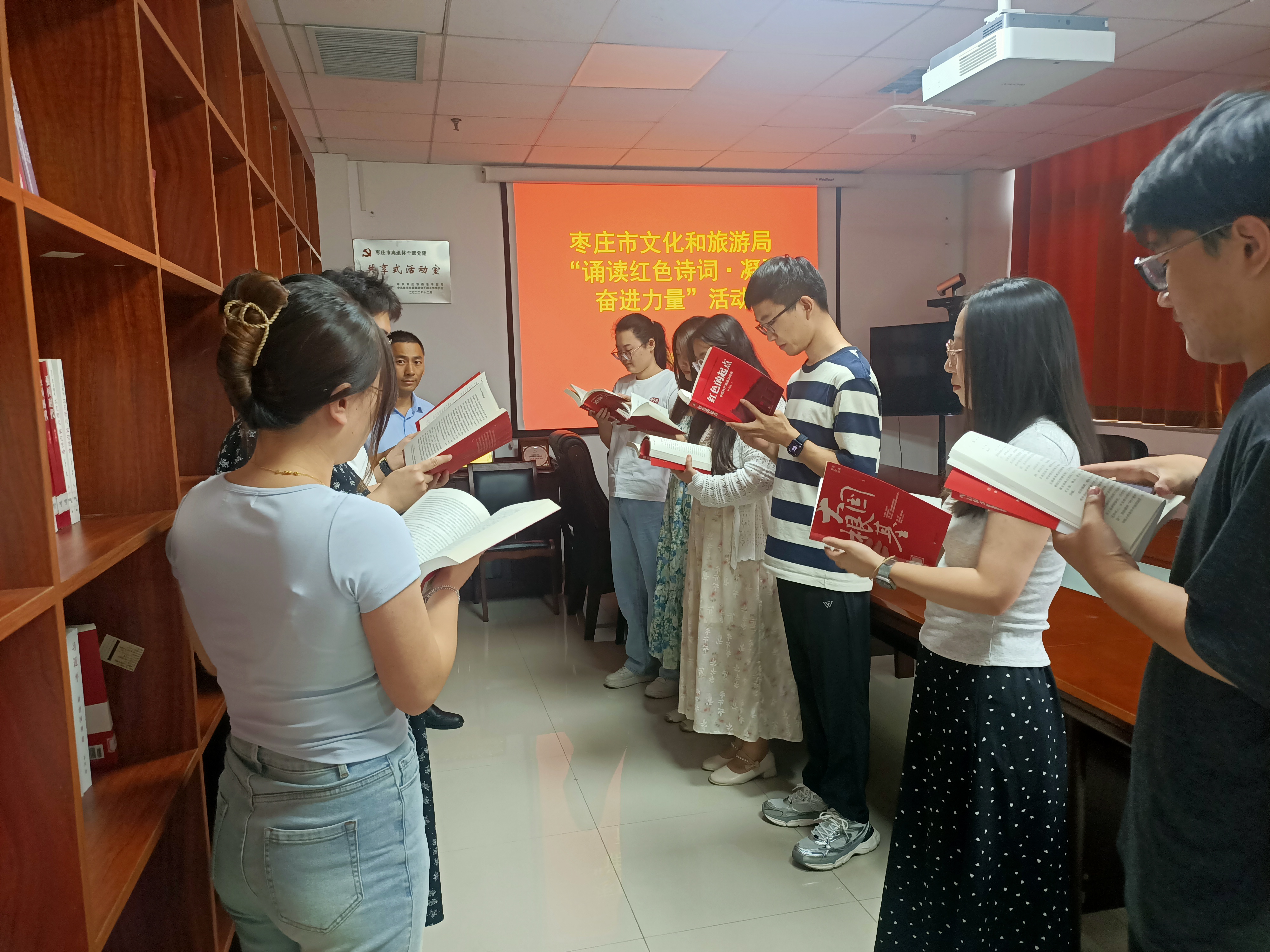 此次活动面向市文旅局青年理论学习小组成员举行,每位成员围绕“诵读红色诗词·凝聚奋进力量”主题,选取一篇红色诗词作品进行朗诵,成员们朗诵了《七律·人民解放军占领南京》《浪淘沙·北戴河》《我的“自白书”》等诗词,抒发当代年轻人的爱国爱党情怀。本次活动主题鲜明、内容丰富、意义深远,以诵读的表现形式,多视角诠释厚重党史,弘扬红色精神,滋养浩然正气,坚定理想信念,让大家从中感受革命与传统的震撼,感受“红色精神”的冲击,唤起战斗岁月回忆,接受党史和革命传统教育。
