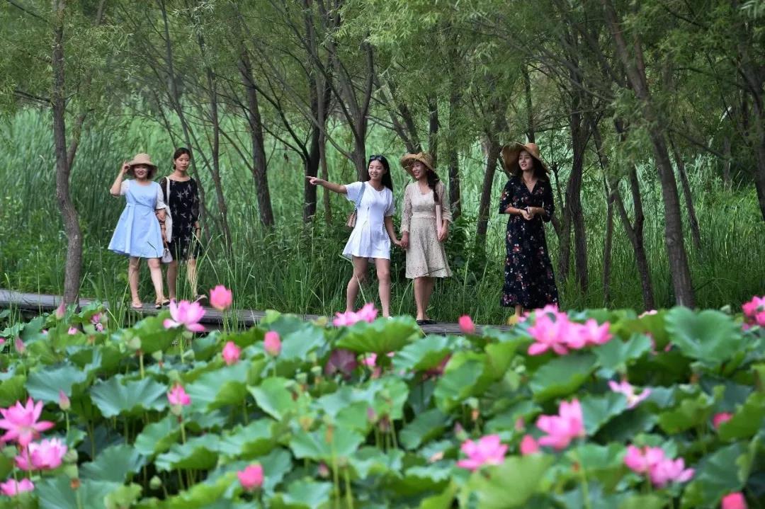 夏季是孕育的季节,注定丰满。千顷碧波,万亩荷塘,那韵味,寻梦者的雅兴。我情不自禁想起了那“接天莲叶无穷碧,映日荷花别样红”的曼妙诗句。今年夏到湿地,人到湿地。湿地里必有一颗诗心,诗心里必有一朵画意。芬芳,是源于灵魂深处的微笑。这,就是运河湿地的美丽。