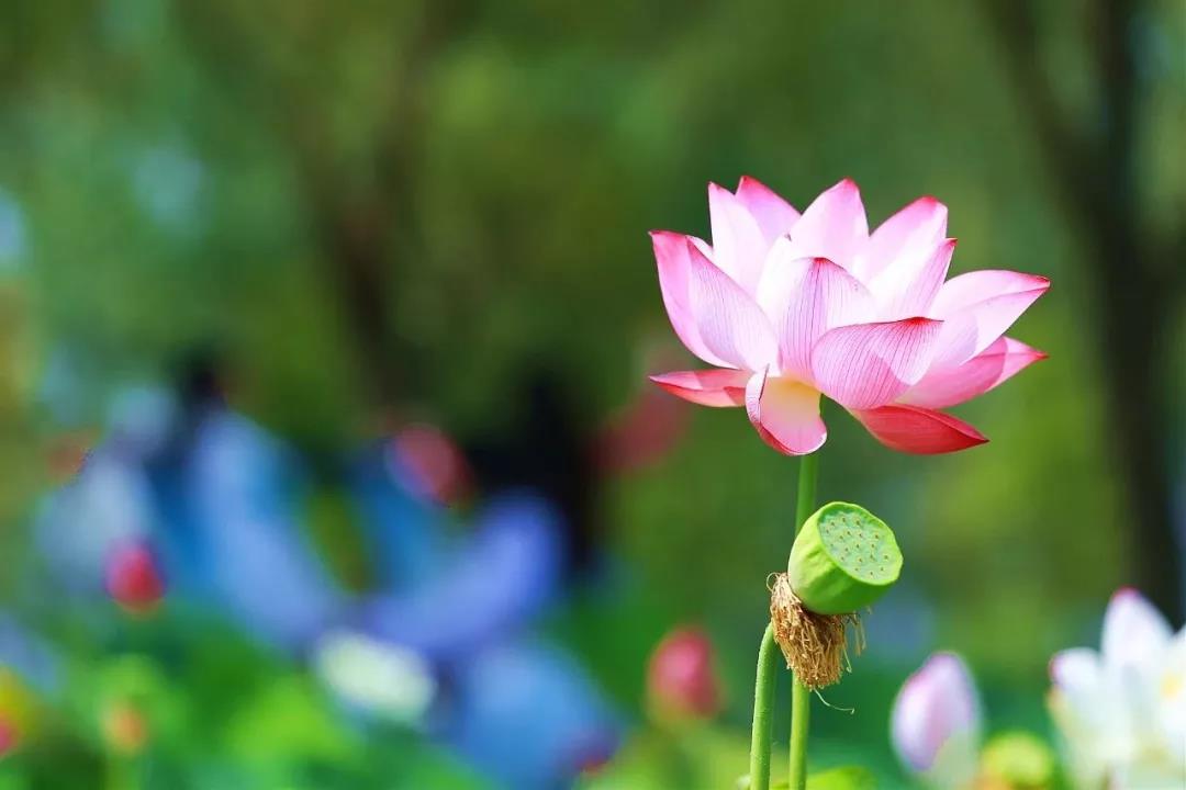 “莲,花之君子之者”,它必定是有品格的。宋代词人周邦彦在《苏幕遮》中写道:“叶上初阳干宿雨、水面清圆,一一风荷举。”你看,那高傲的叶子,多像是一个倒立的斗笠,似乎随时准备接受阳光的挑战或露珠的调戏。其实我知道,他是一个护花使者。那含苞欲放的神物,在他的绿荫里,宛如少女的羞涩。而一旦绽放,她就会超越荷叶的头顶,秀丽端庄。