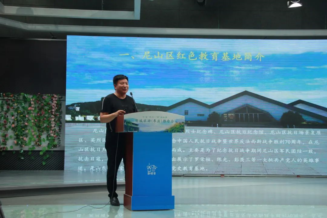6月29日,“为‘孟’而行·‘邹’游故里”邹城旅游(枣庄)推介会在枣庄电视台演播厅举行。枣庄市文化和旅游局四级调研员黄国清,邹城市文化和旅游局党组副书记、邹城市文化旅游公共服务中心主任娄元东及两地文旅部分负责人、重点旅行社负责人、主流媒体代表等近百人参加了会议。