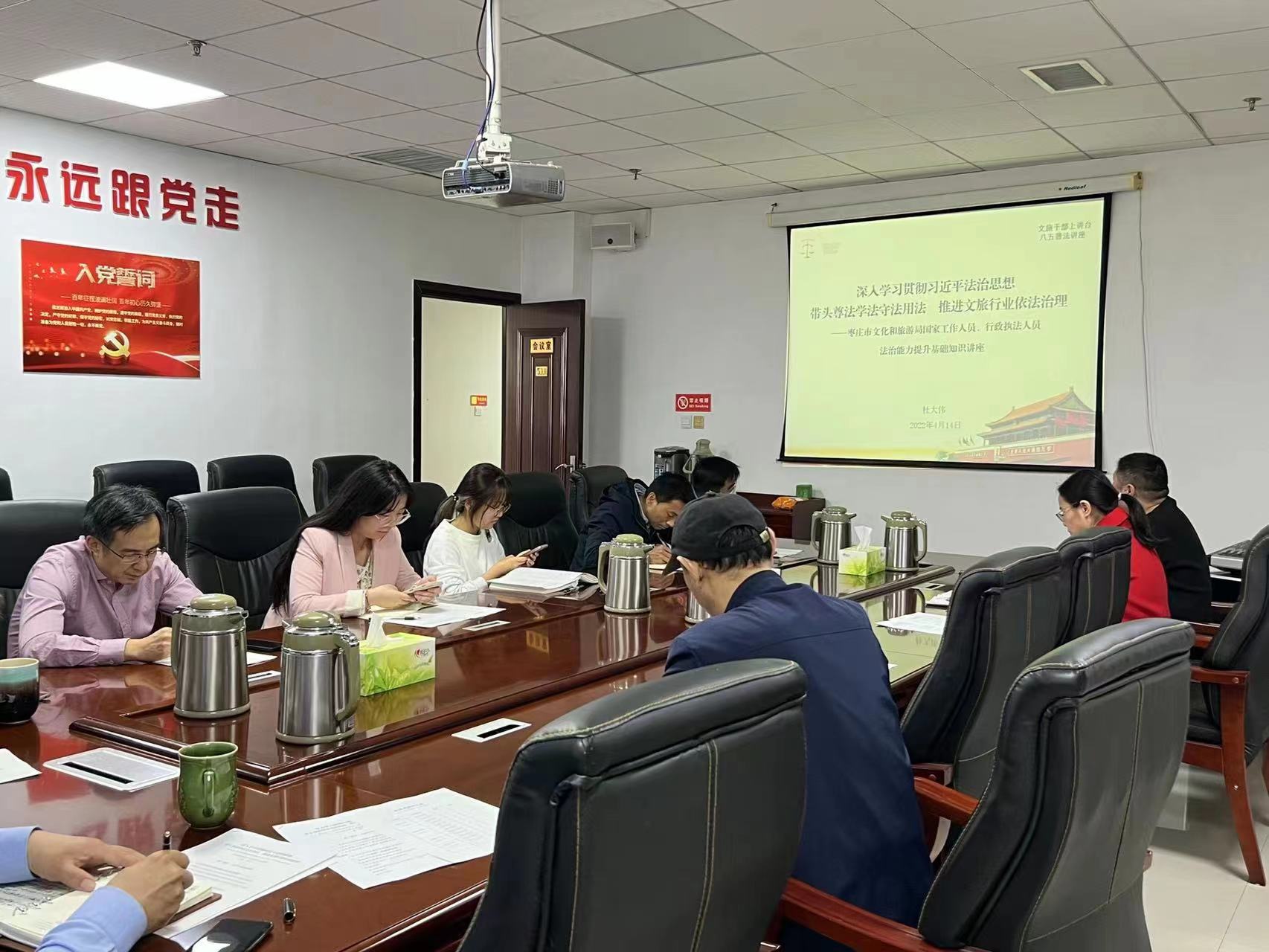 为助力我市创建全国法治政府建设示范市,迎接第三方评估组实地评估,提升机关干部、执法人员法律综合素质,4月14日下午,市文旅局举办“枣庄市文化和旅游局国家工作人员、行政执法人员法治能力提升基础知识集中学习培训活动”首场讲座暨文旅干部上讲台活动。