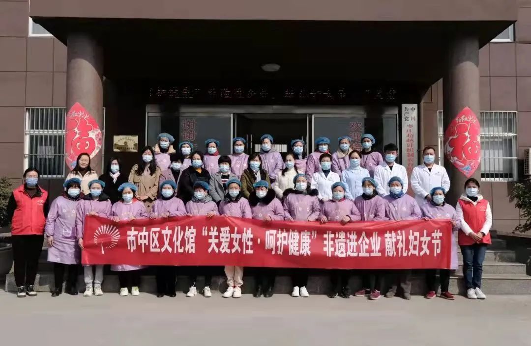 9、3月7日,市中区文化馆在山东超越制衣股份有限公司开展“关爱女性 呵护健康”非遗进企业,献礼妇女节活动。