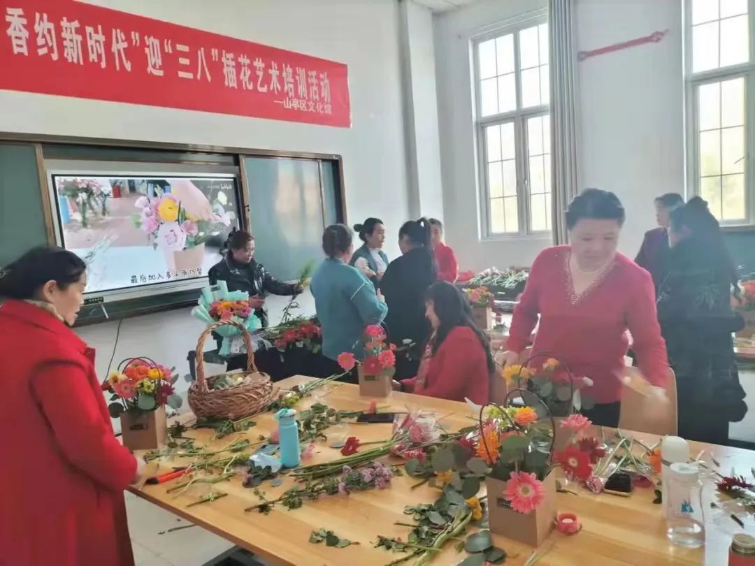 9、3月8日,山亭区文化馆开展“巾帼心向党 香约新时代”插花艺术培训活动。(线下)