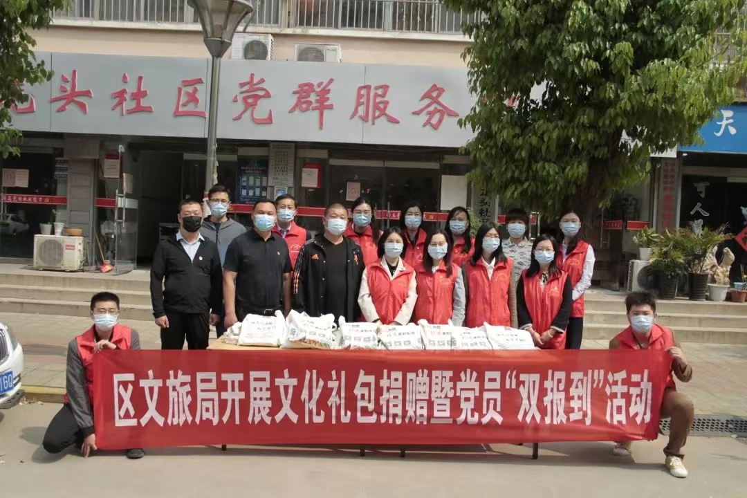 33、5月7,文化路街道龙头社区联合区文旅局开展文化礼包捐赠暨党员“双报到”活动。