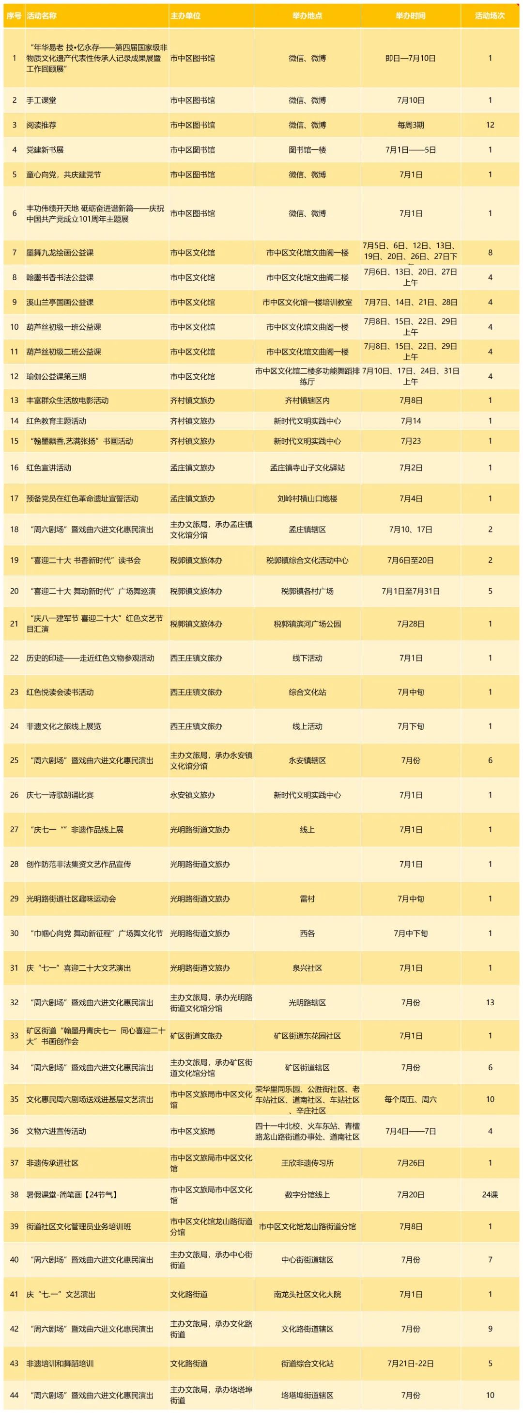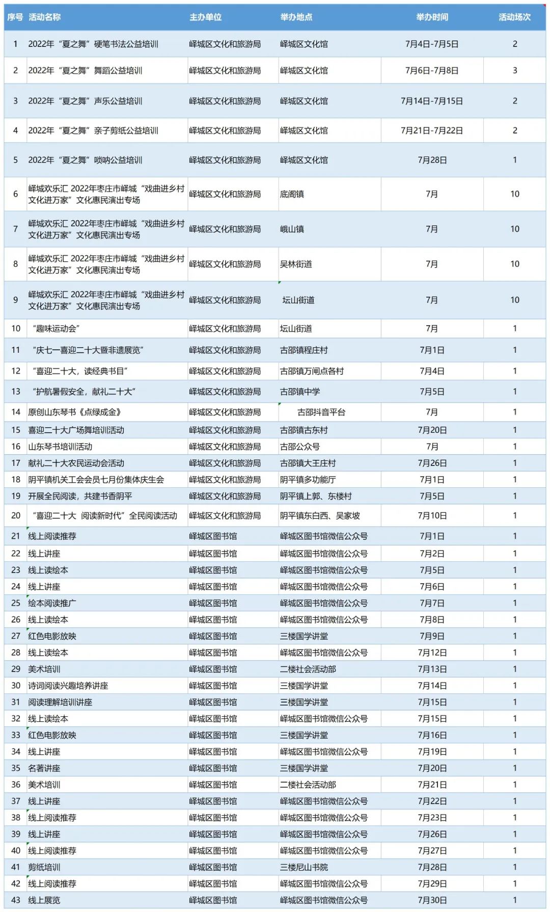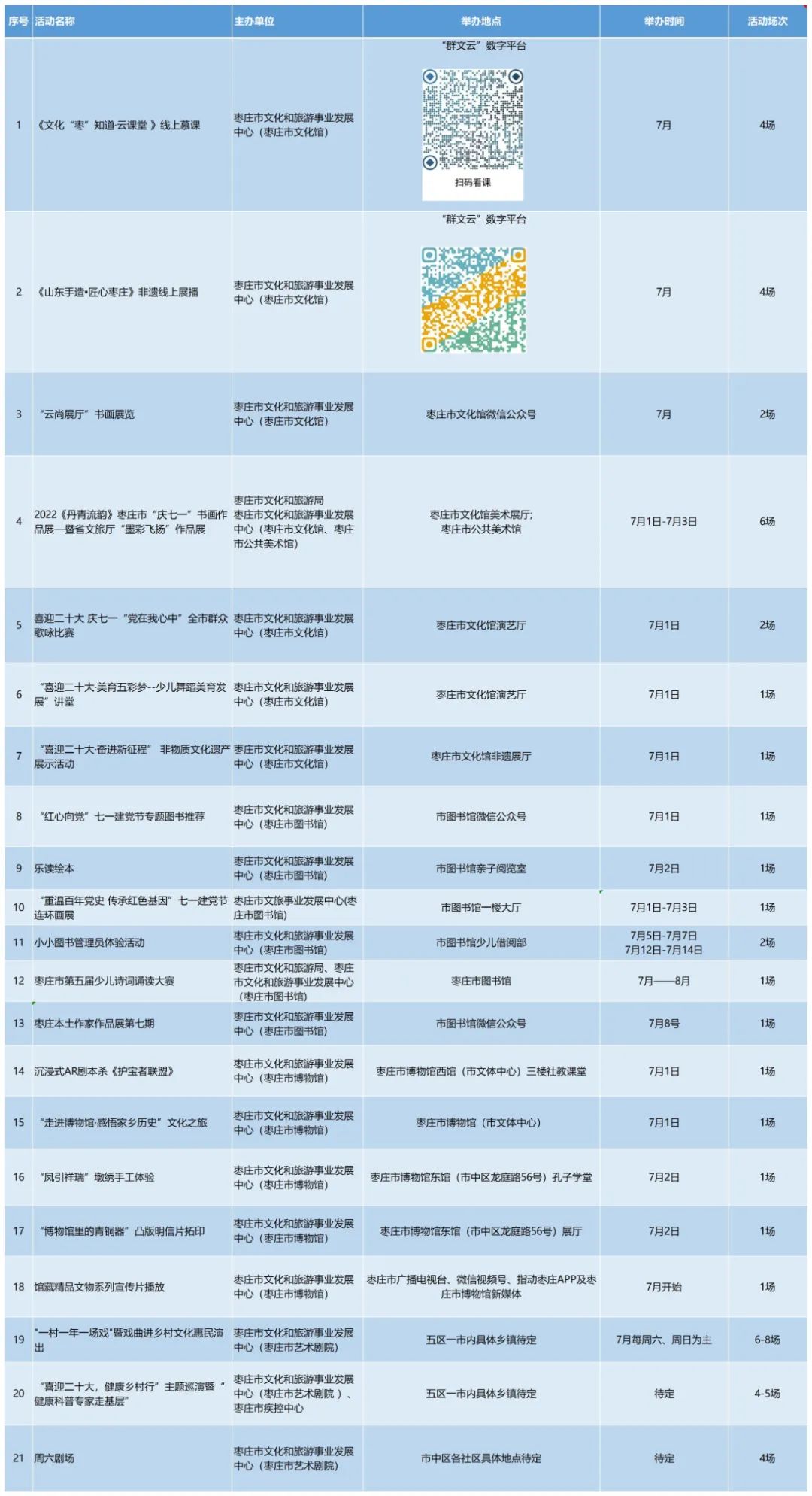 文化润心 满意枣庄 | 枣庄市2022年7月份群众文化活动计划