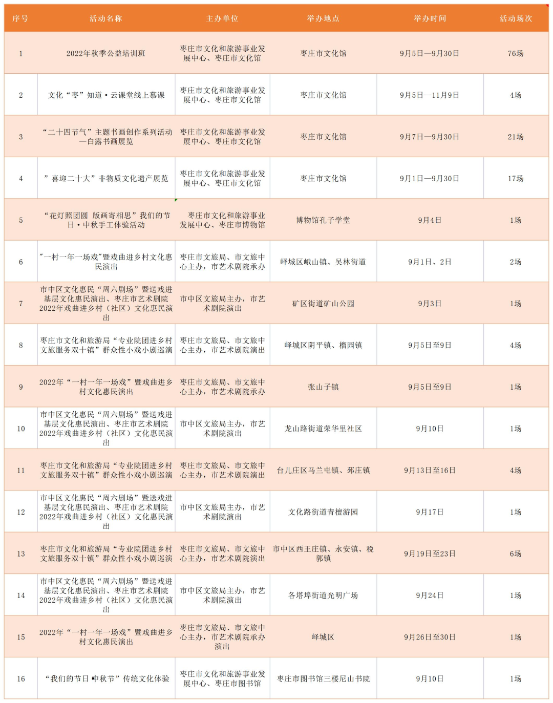 文化润心 满意枣庄 | 枣庄市文化和旅游事业发展中心9月文化活动计划抢先看~