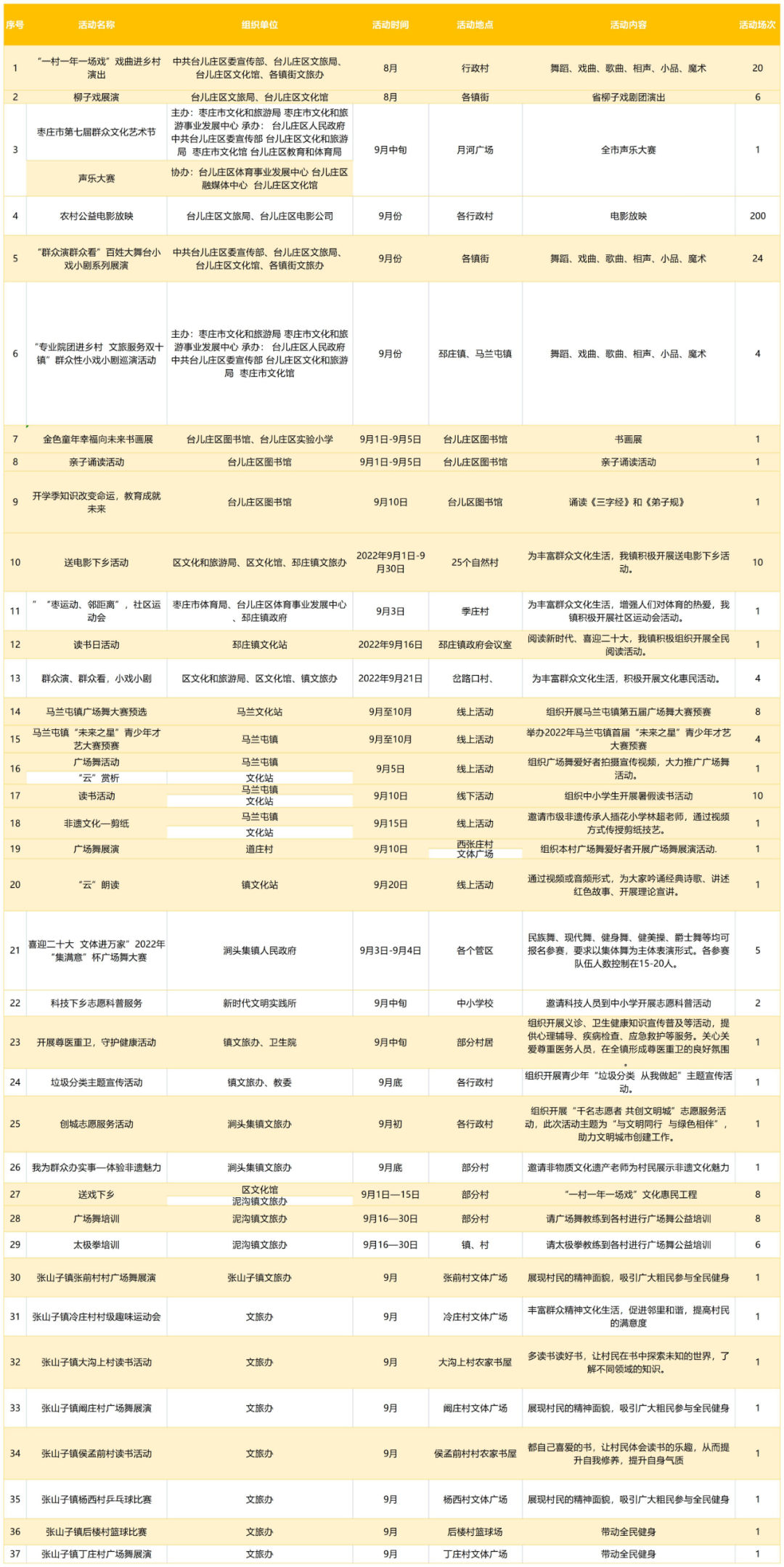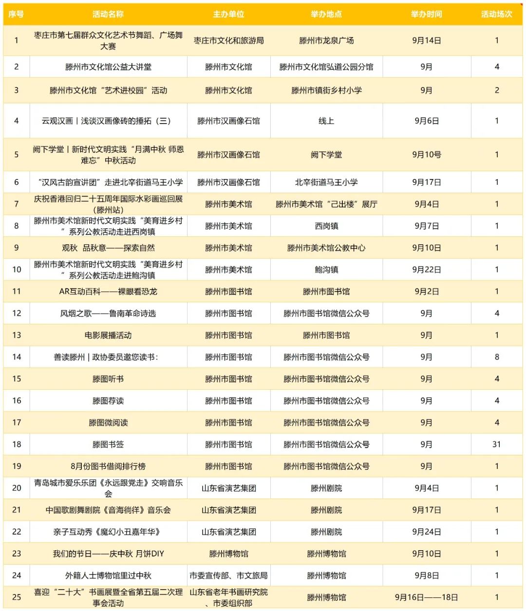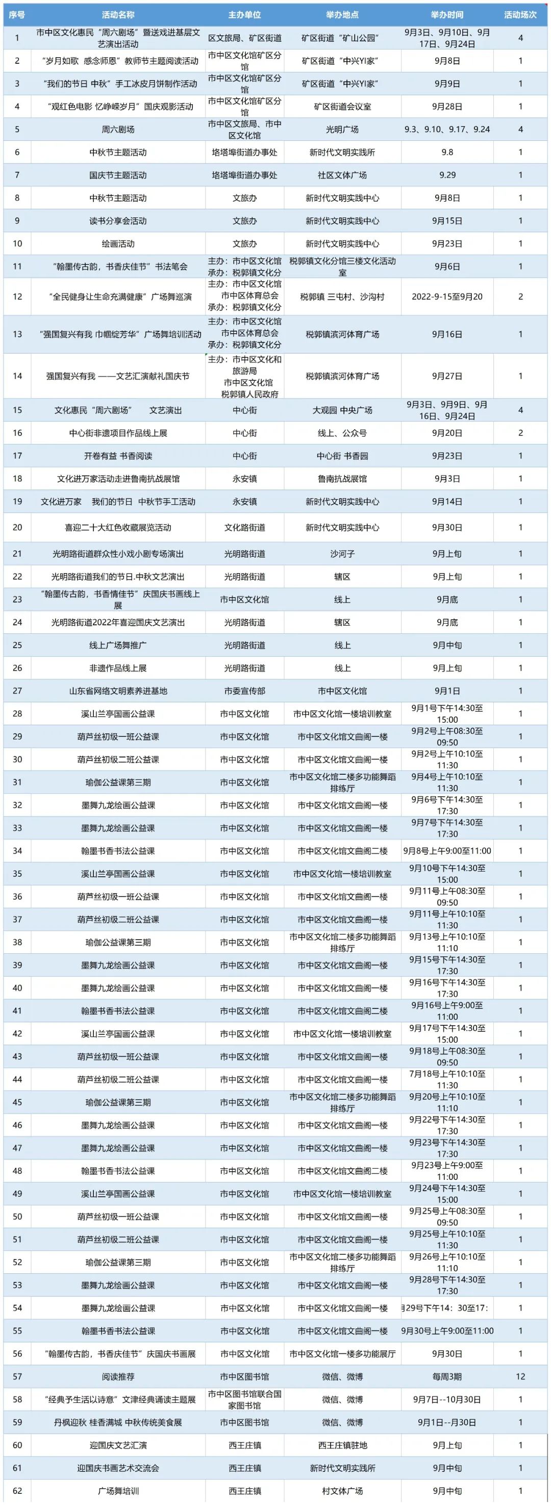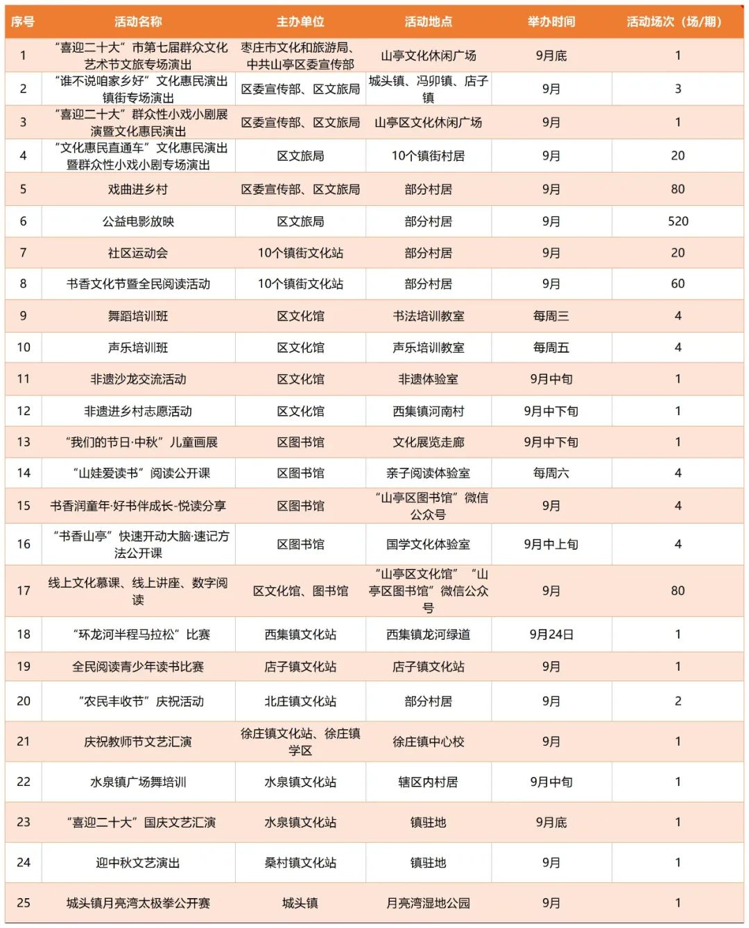 文化润心 满意枣庄 | 枣庄市2022年9月份群众文化活动计划