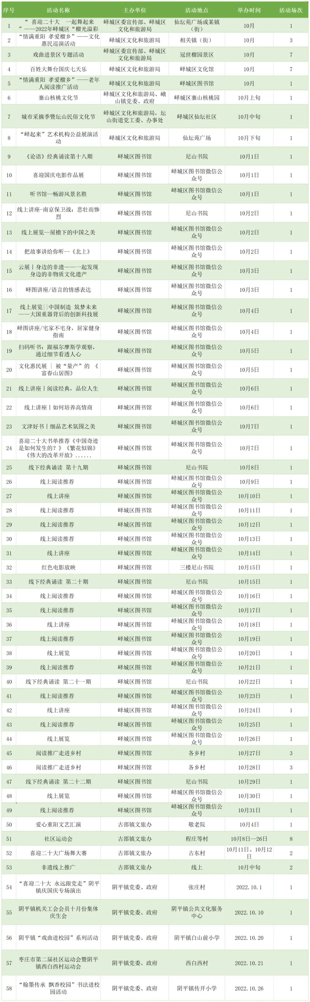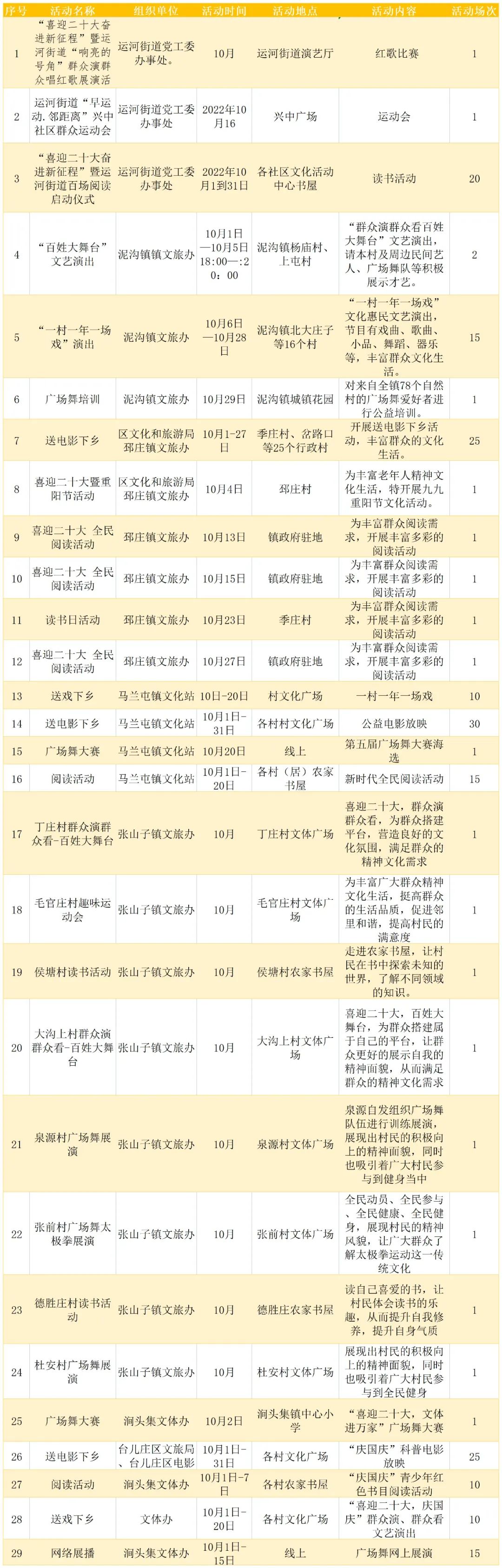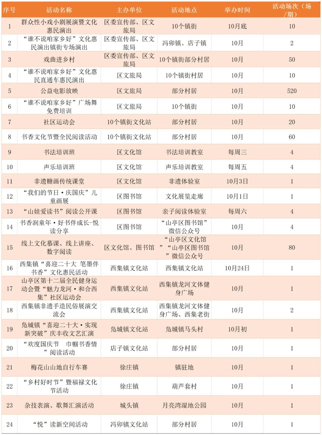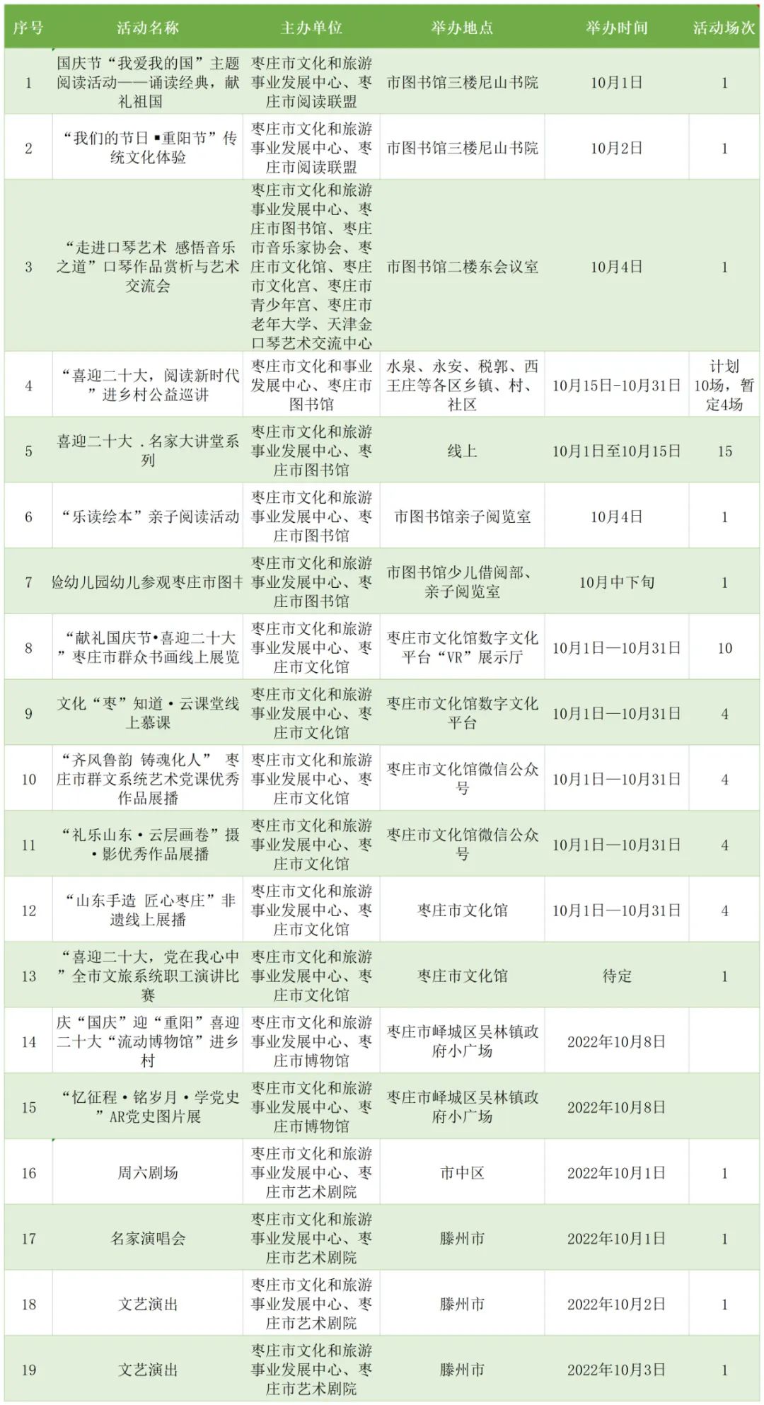 文化润心 满意枣庄 | 枣庄市2022年10月份群众文化活动计划