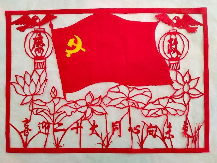 22、10月15日台儿庄区鲁南兰祺剪纸市级非遗传承人王广明创作喜迎二十大作品。用一把剪刀、一沓红纸,精心创作了喜迎二十大系列剪纸作品,以传统剪纸技艺向党的二十大倾情献礼。