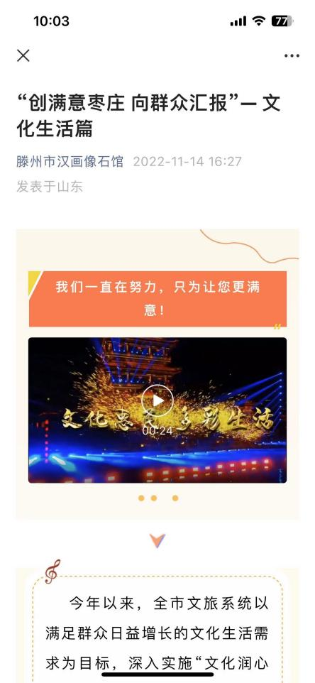 7、11月14日,“创满意枣庄 向群众汇报”— 文化生活篇