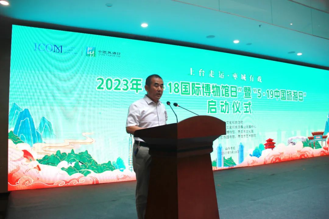 5月18日,由枣庄市文化和旅游局主办,枣庄市文化和旅游事业发展中心承办的2023年“5·18国际博物馆日”暨“5·19中国旅游日”枣庄分会场主题活动在枣庄市博物馆(新馆)举行。活动由市文旅事业发展中心副主任张勇主持,枣庄市文化和旅游局党组成员、市文旅事业发展中心党委书记、主任李从望、枣庄市教育局二级调研员魏秀民、团市委副书记颜蔚然、枣庄市文旅局副局长、市文物局局长胡丽萍、枣庄学院旅游与资源环境学院副书记韩建敏、市文旅事业发展中心副主任张涛,各区(市)文化和旅游局分管负责人,以及受邀参加活动的全市大中小学校代表、新闻媒体代表出席了此次活动。