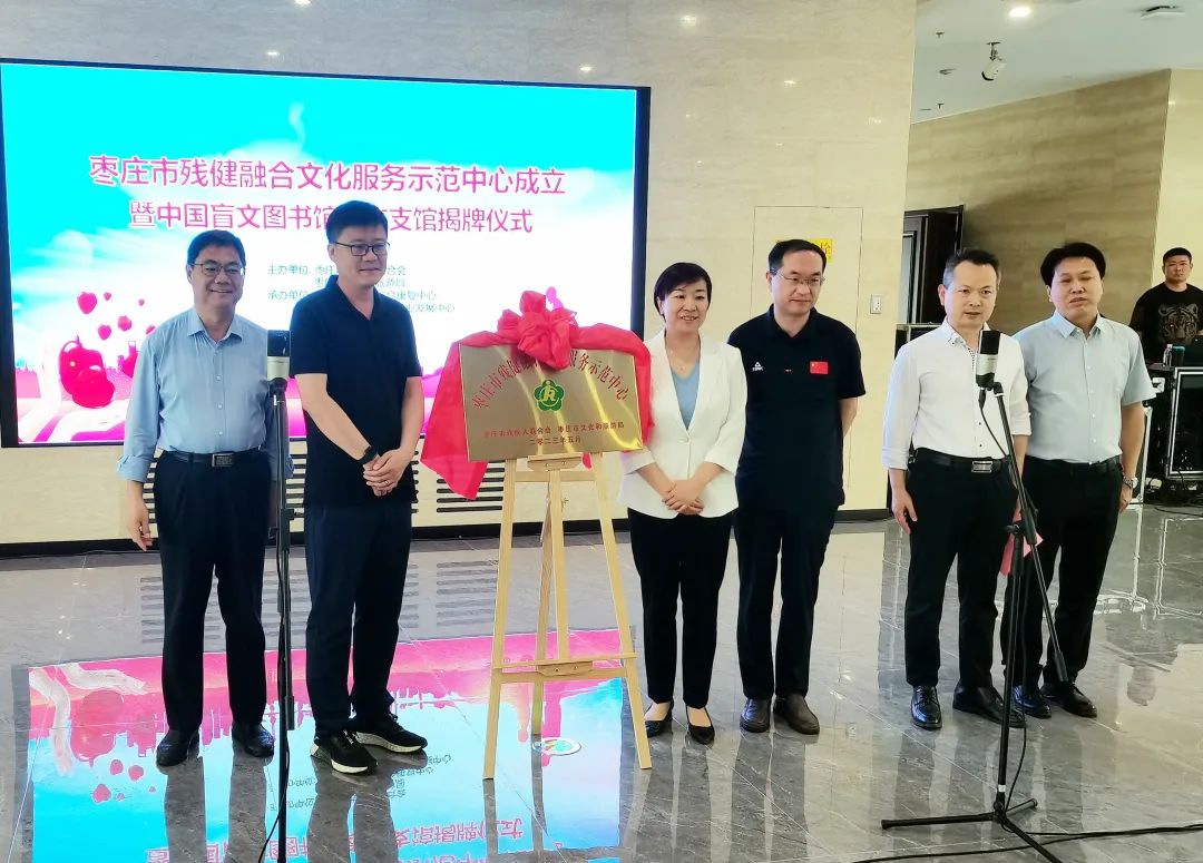 为落实我市残疾人事业发展“十四五”规划文化工作相关要求,进一步推动残健融合文化服务示范中心建设,发挥公共图书馆全民阅读文化服务的作用,5月23日上午,由枣庄市残疾人联合会、枣庄市文化和旅游局主办,枣庄市残疾人综合康复中心、枣庄市文化和旅游事业发展中心、枣庄市图书馆承办的枣庄市残健融合文化服务示范中心暨中国盲文图书馆分支馆揭牌仪式活动,在市图书馆城市书房举行。中国残疾人体育运动管理中心群体特奥部部长齐靓,省残联宣传文体部部长李英杰,枣庄市残联党组书记、理事长王洪燕,枣庄市残联党组成员、副理事长孙守强,市文化和旅游事业发展中心党委专职副书记邱洪军出席活动。
