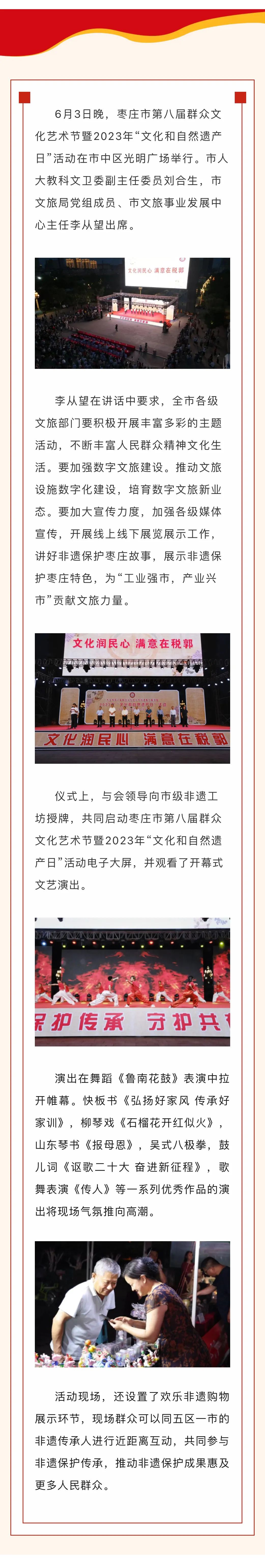 枣庄市第八届群众文化艺术节暨2023年“文化和自然遗产日”活动在市中区举行