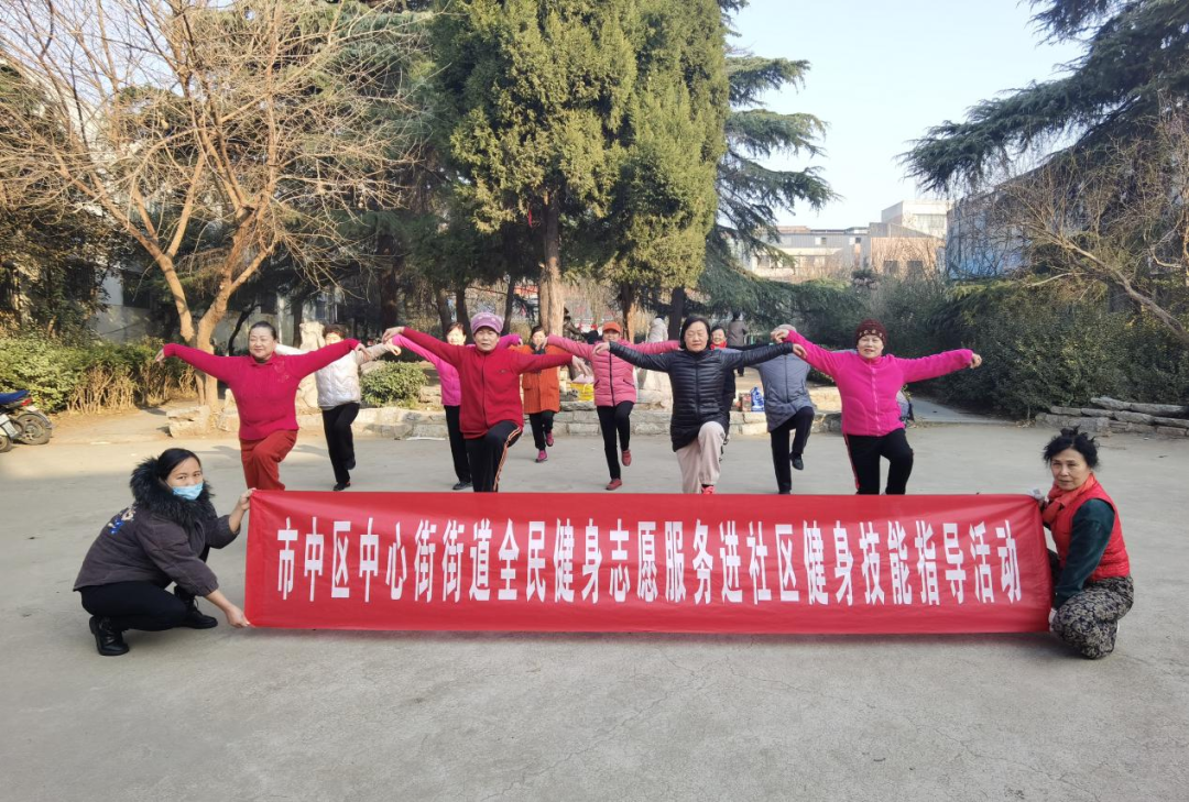 48、1月2日,中心街街道组织文体志愿者在中兴社区文体活动点开展“全民健身志愿服务”技能培训活动。