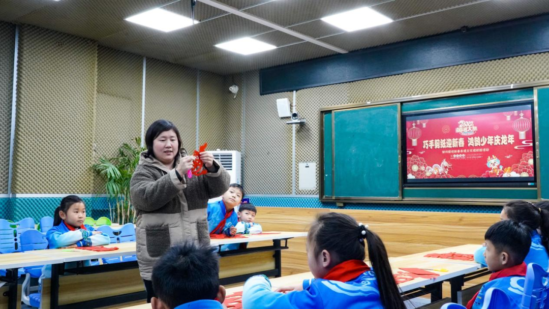 15、1月16日,薛城区邹坞镇开展巧手剪纸迎新春,鸿鹄少年庆龙年活动