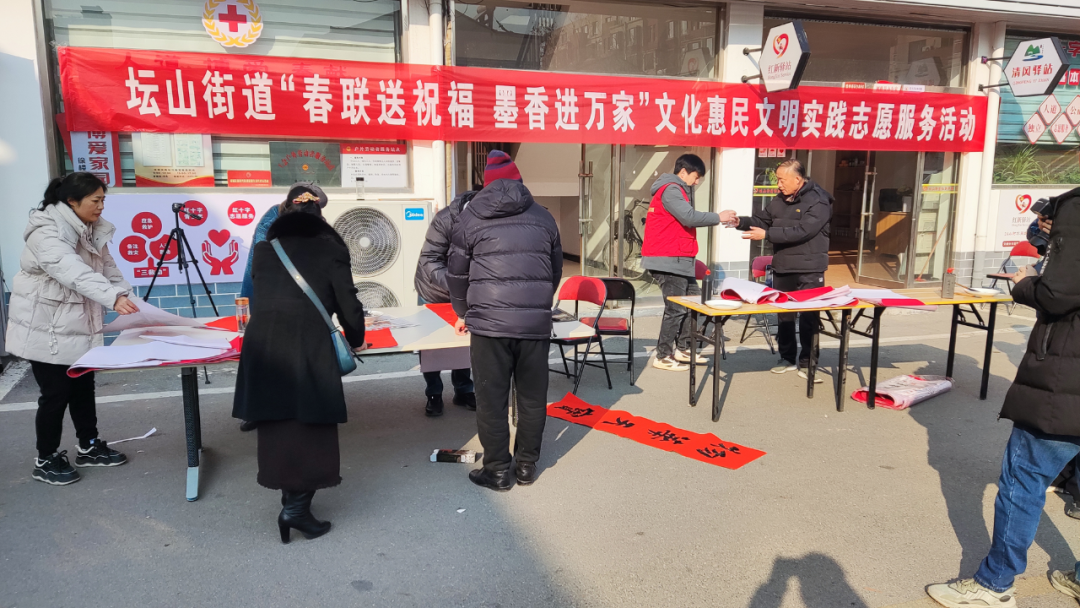 20.1月29日,坛山街道徐楼社区开展“春联送祝福 墨香进万家”文化惠民活动。