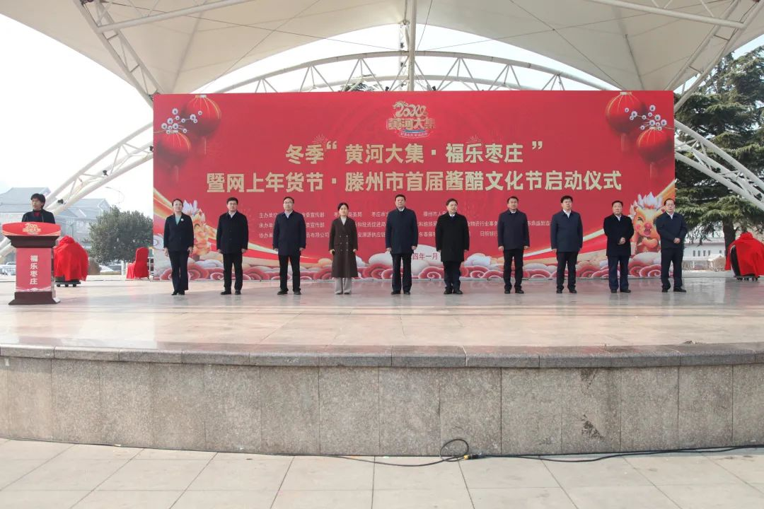3、1月12日,在滕州市龙泉广场举行冬季“黄河大集·福乐枣庄”暨网上年货节·滕州市首届酱醋文化节启动仪式