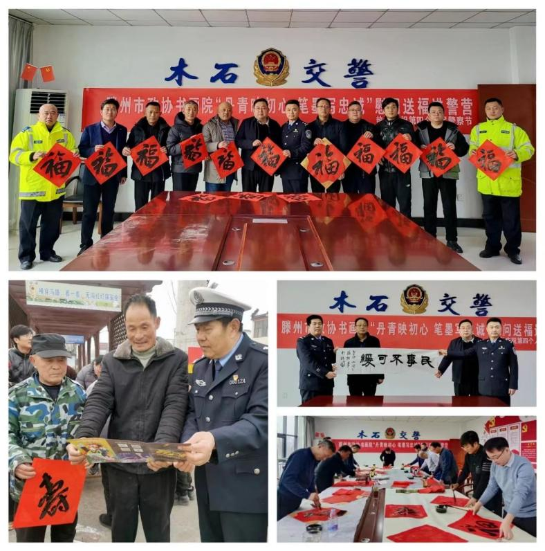 94、1月9日,木石交警中队、文旅办邀请滕州市书法协会爱好者为辖区百姓送“福”。