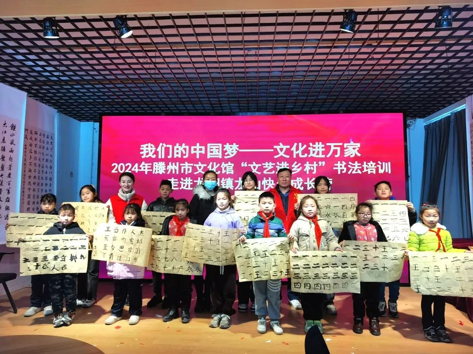 8、1月6日,滕州市文化馆赴龙阳镇开展“文艺进乡村”活动,进行书法培训活动。