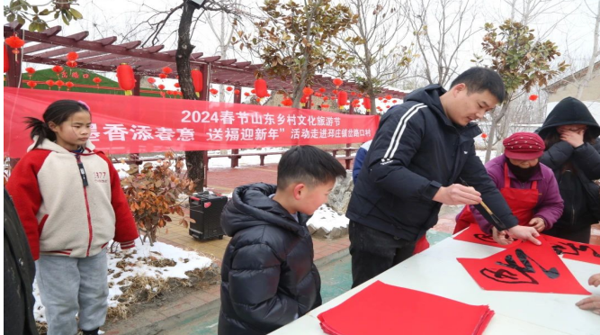 24、2月3日,2024春节山东乡村文化旅游节“墨香添春意 送福迎新年”活动走进邳庄镇岔路口村。
