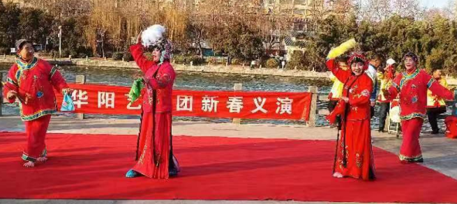 12、2月12和13号大年初三和初四,华阳艺术团在水上公园水车旁举办新春义演活动,活动内容有戏曲相声小品器乐合奏等,观众近200人。