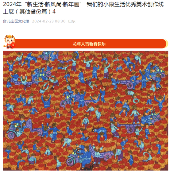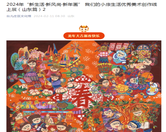 11.2月11日上午,台儿庄区文化馆在微信公众号发布2024年“新生活·新风尚·新年画” 我们的小康生活优秀美术创作线上展(山东篇)2