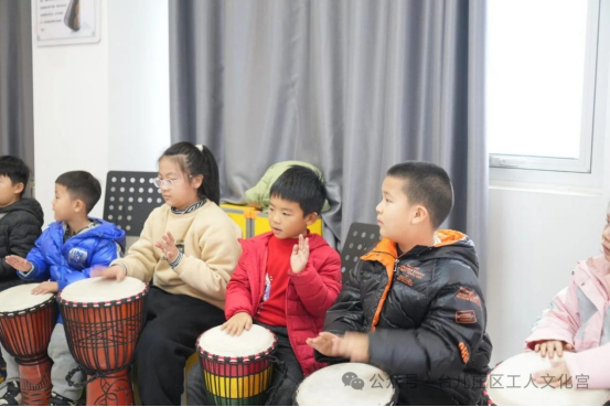 34.为满足职工子女了解和演奏器乐的需求,台儿庄区工人文化宫开设扬琴手鼓公益体验课,整个体验过程,孩子们认真聆听,细心感受,快乐敲打,陶醉其中。