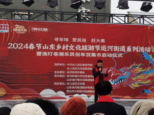 1. 2月1日上午,由台儿庄区文化和旅游局组织策划、区文化馆承办的2024春节山东乡村文化旅游节台儿庄系列活动—“龙跃齐鲁·乐享非遗”2024春节台儿庄区非遗年货市集在渔灯巷火热开市。