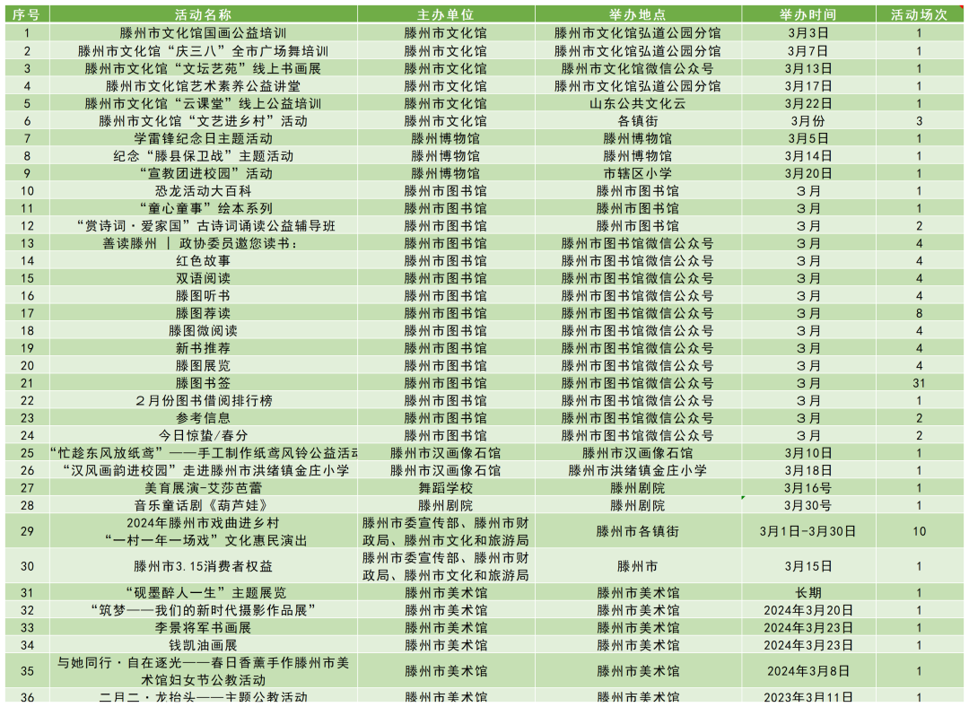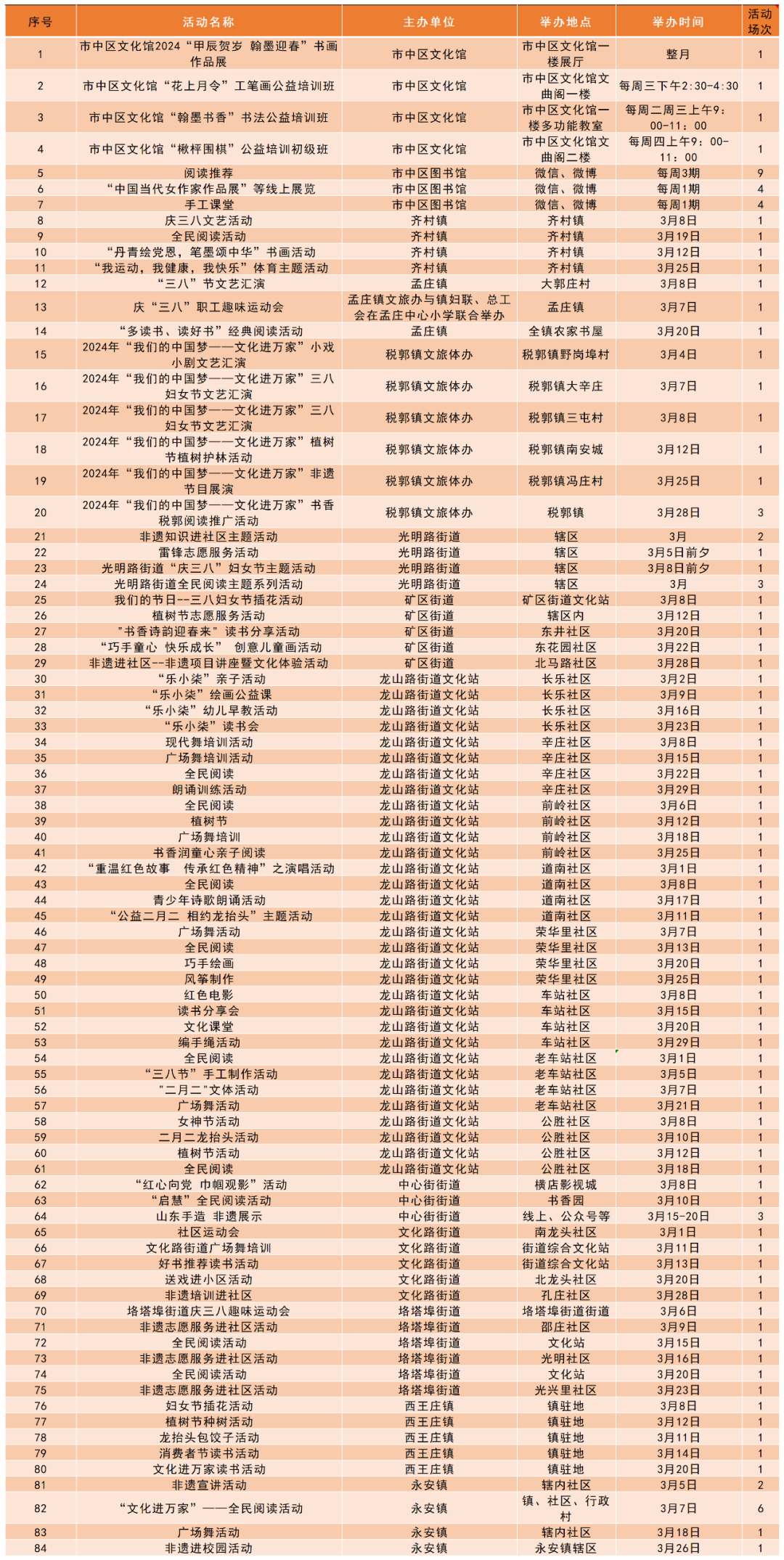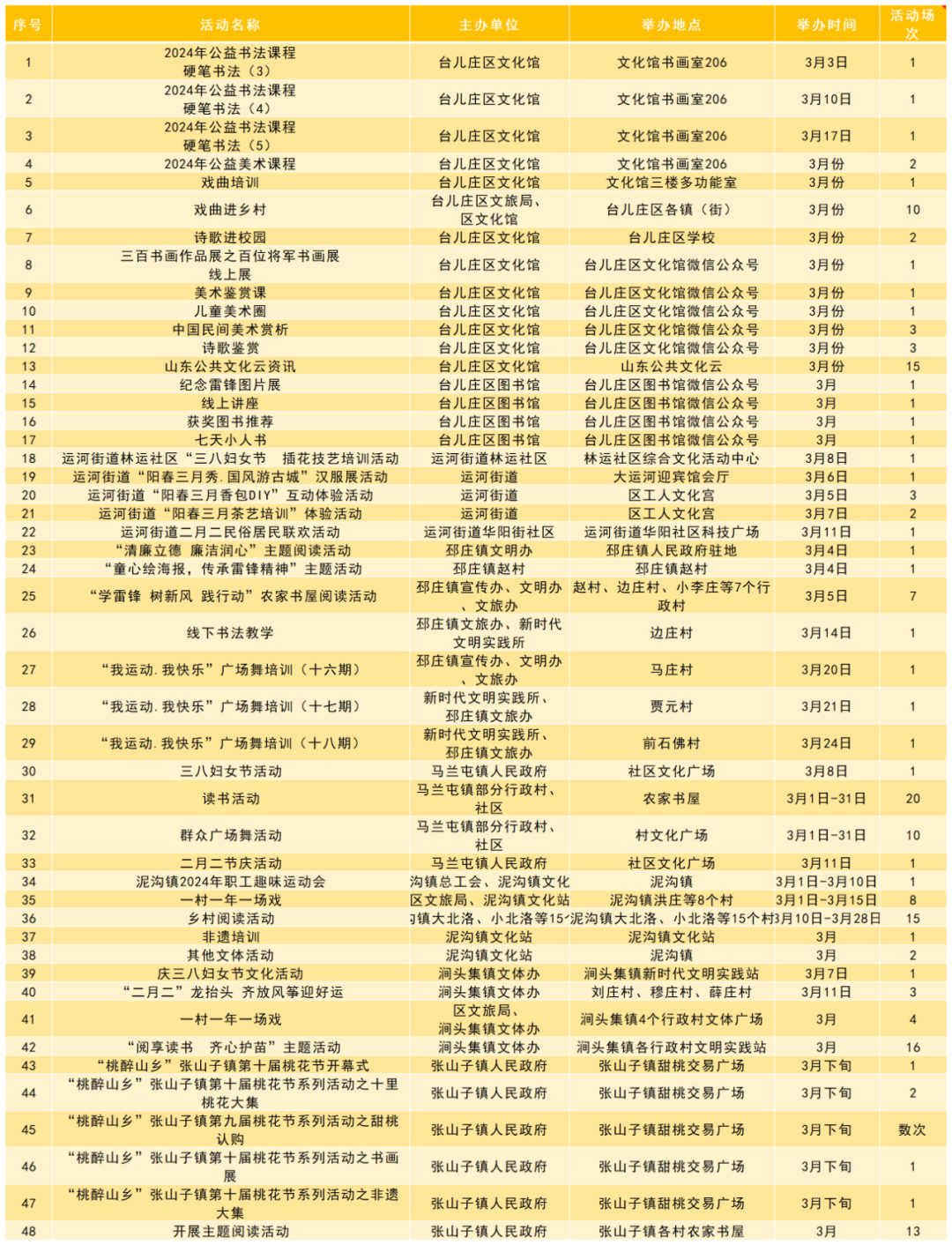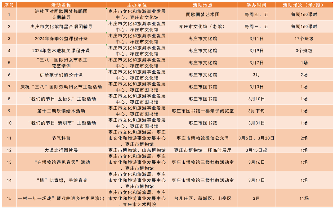 文化润心 满意枣庄 | 枣庄市2024年3月份群众文化活动计划