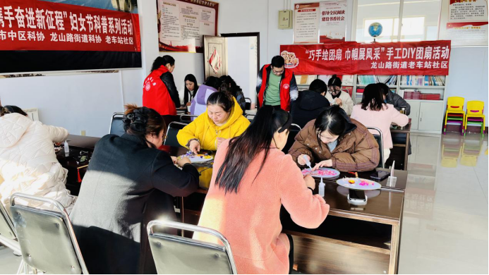 76、3月5日,龙山路街道在老车站社区举行手工DIY团扇活动。
