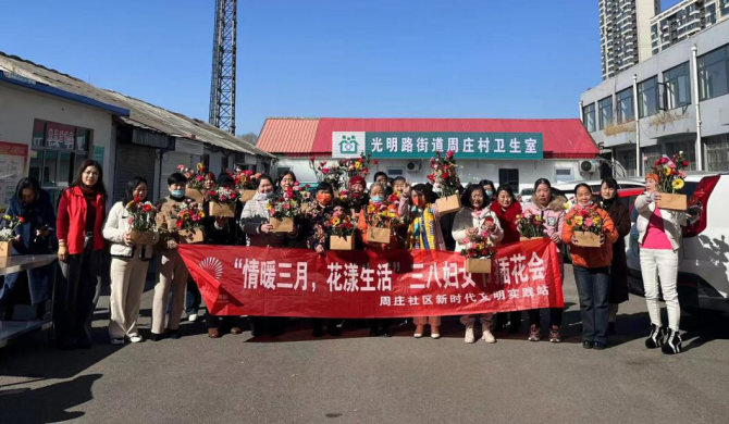 61、3月8日,光明路街道周庄社区举办庆“三八”非遗进社区插花活动。