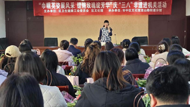 9、3月8日,“巾帼英姿展风采,铿锵玫瑰绽芳华”庆“三八”非遗进机关活。