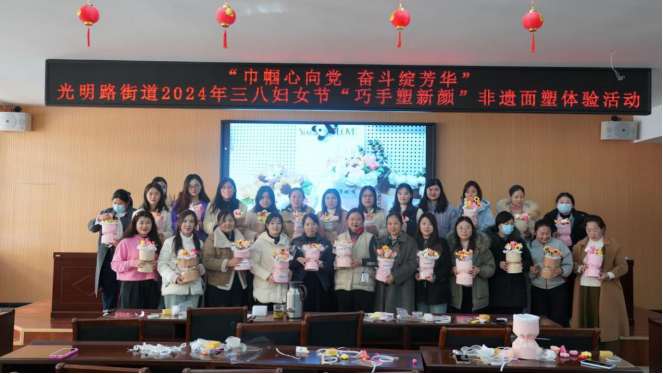 60、3月8日,光明路街道“三八”妇女节女职工 巧手塑“新颜”非遗体验。
