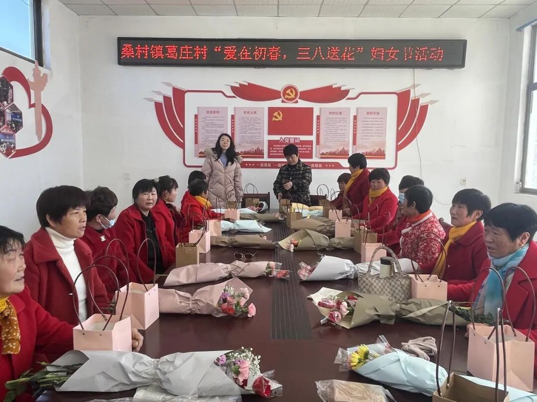2、3月8日,山亭区桑村镇葛庄村开展“爱在初春 三八送花”妇女节插花活动。