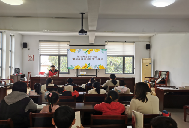 8.11月9日,为让青少年培育和践行社会主义核心价值观,运河街道在华阳社区开展“移风易俗 倡树新风”小课堂。