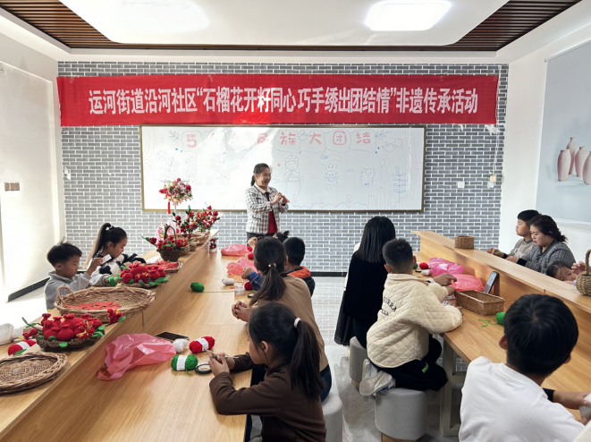 1.11月2日运河街道总工会在沿河社区开展“石榴花开籽同心巧手绣出团结情”非遗传承活动。