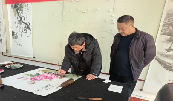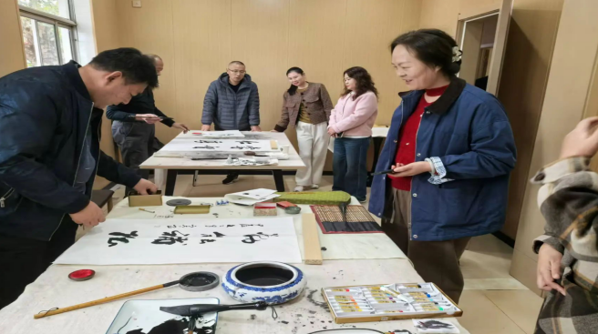 24.11月26日,在区文化馆书画室文艺爱好者们进行书画创作交流活动。