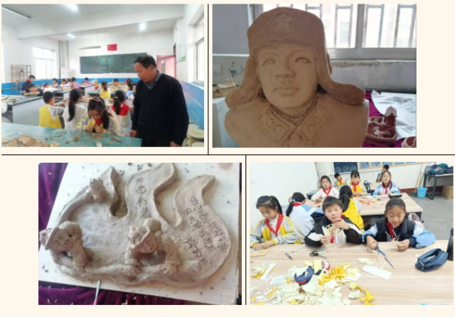 1.11月1日,非遗项目走进台儿庄区实验小学西关校区:运河泥塑(郭老师作品欣赏)、剪纸。