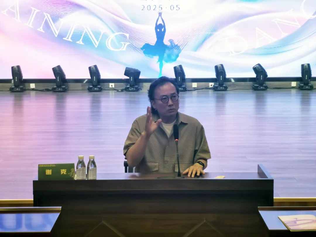 国家一级编剧、导演谢克老师,在培训中分享了《哈达献给解放军》《誓言》《丰收时节》《扫街》等经典作品。从作品的选题背景、创作思路,到舞蹈动作的设计与编排技巧,都进行了细致入微的讲解,让学员们对舞蹈创作的各个环节有了更清晰的认识,为他们今后的创作提供了宝贵的经验借鉴。