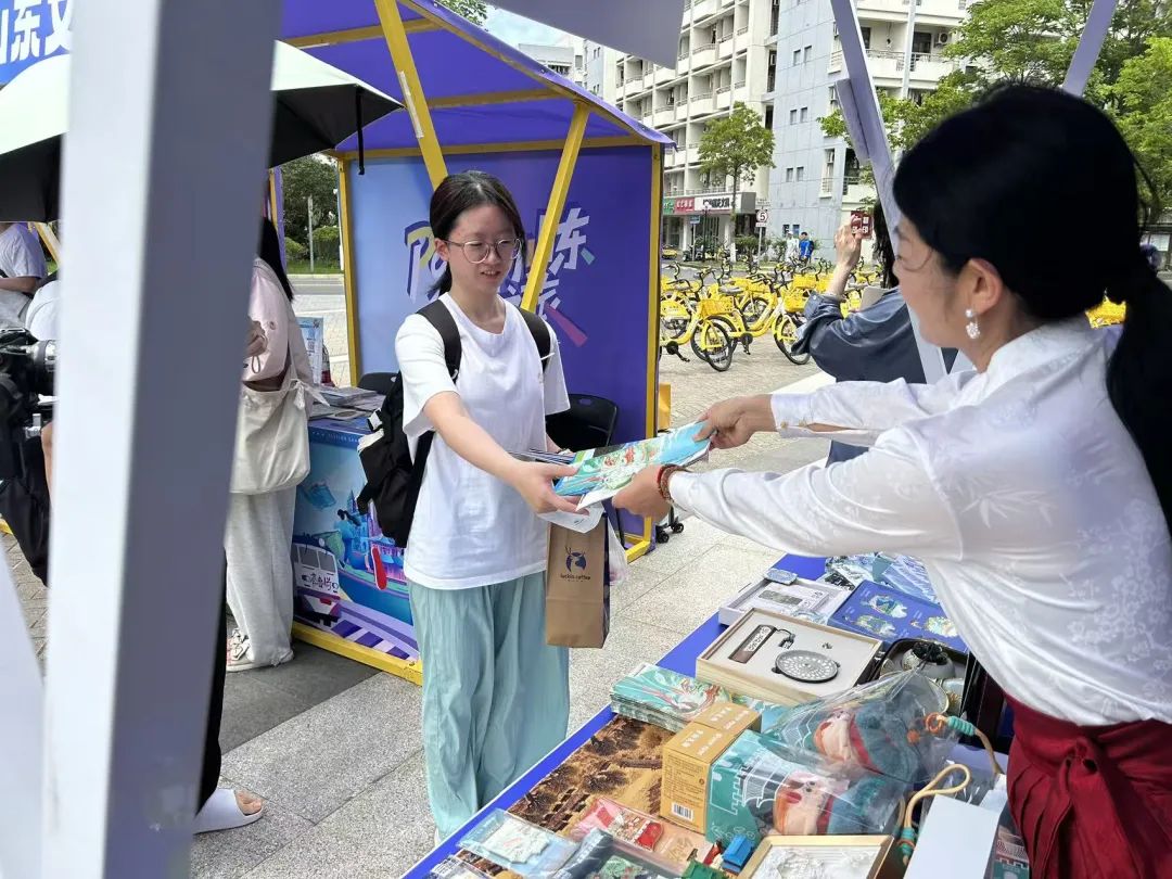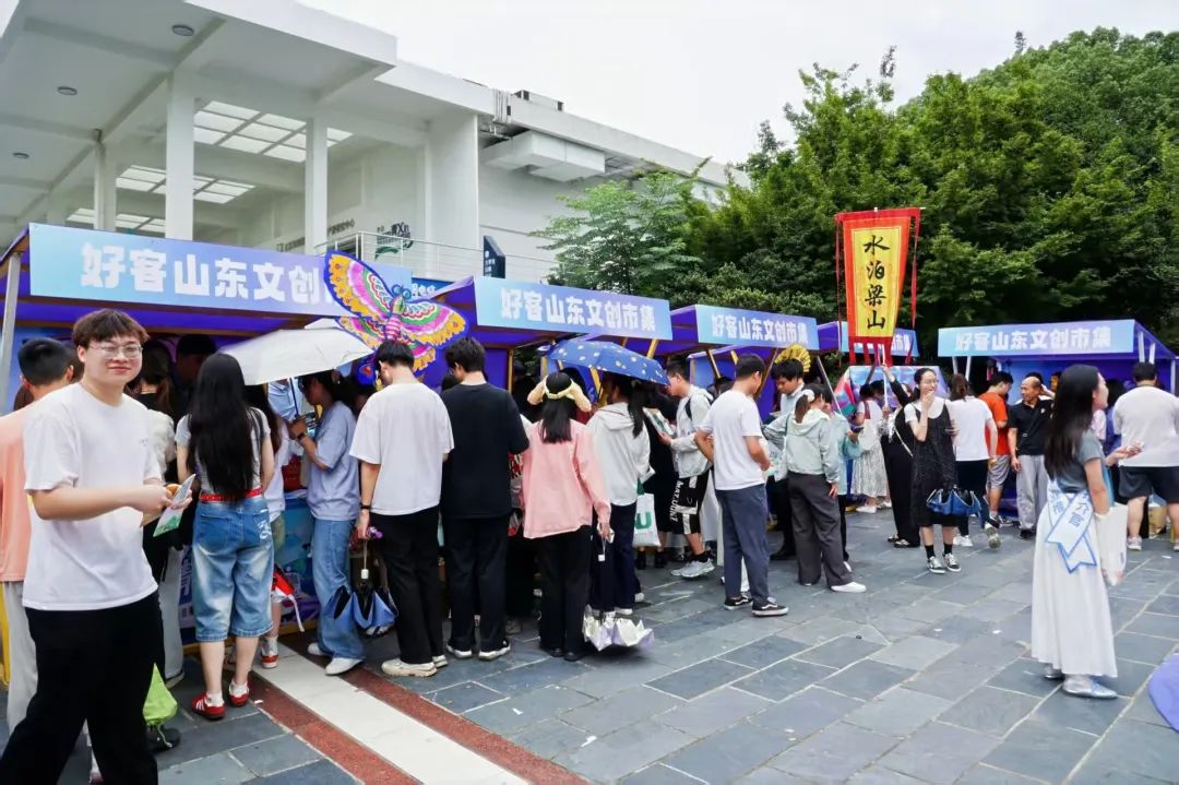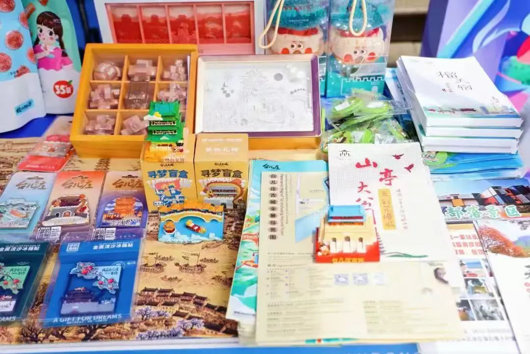 “好客山东文创市集”枣庄展位上,现场发放了全景枣庄文旅宣传册、台儿庄古城宣传册、山亭大公园漫画地图、滕州莲青山风景区宣传册,精心准备了枣庄鲁班锁、台儿庄古城纸雕灯、城门玩偶、文创钥匙扣等文旅特色好物,将传统工艺与年轻审美巧妙融合,吸引学生围观打卡,山亭地瓜枣、麻辣豆制品、山楂条等枣庄味道特色零食受到广大学生热烈欢迎。融合青春色彩与鲁南底蕴的精美产品,点燃了大家对“运河明珠 匠心枣庄”的探索热情。