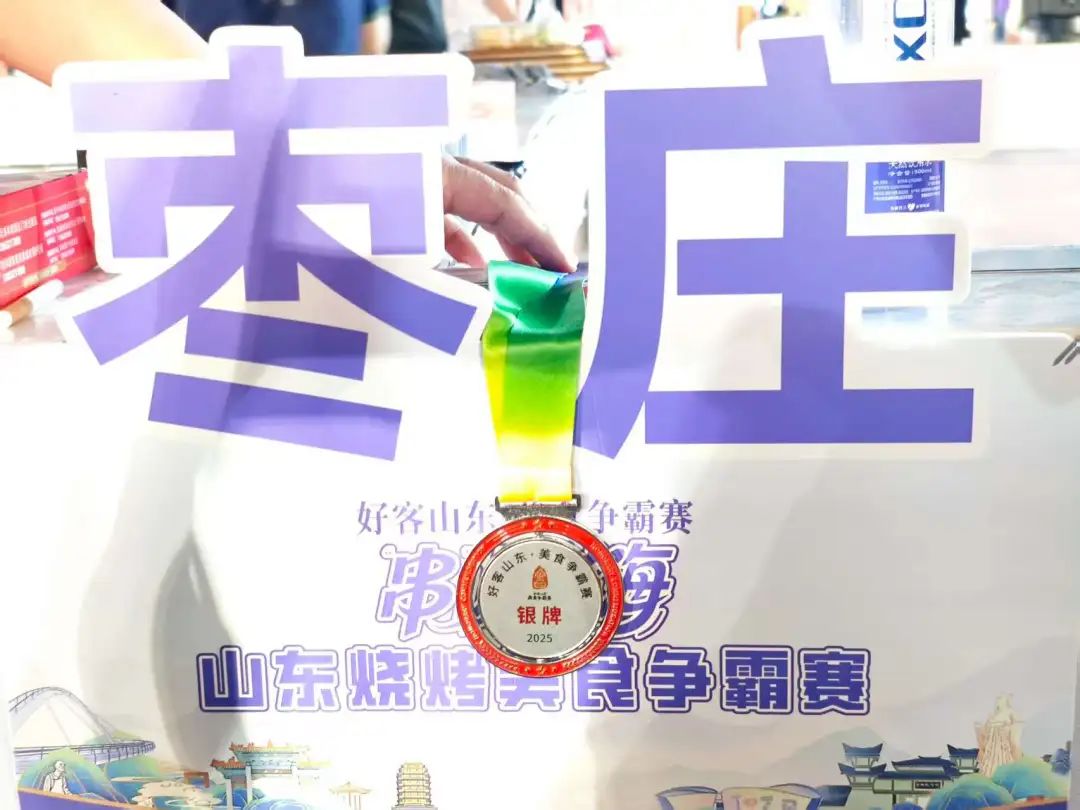 决赛终场哨响,在淄博赛场“串”山越海山东烧烤美食争霸赛中,枣庄战队荣获银牌!这枚凝聚着汗水与匠心的奖牌,让 “枣庄烧烤” 香飘齐鲁、闪耀赛场!
