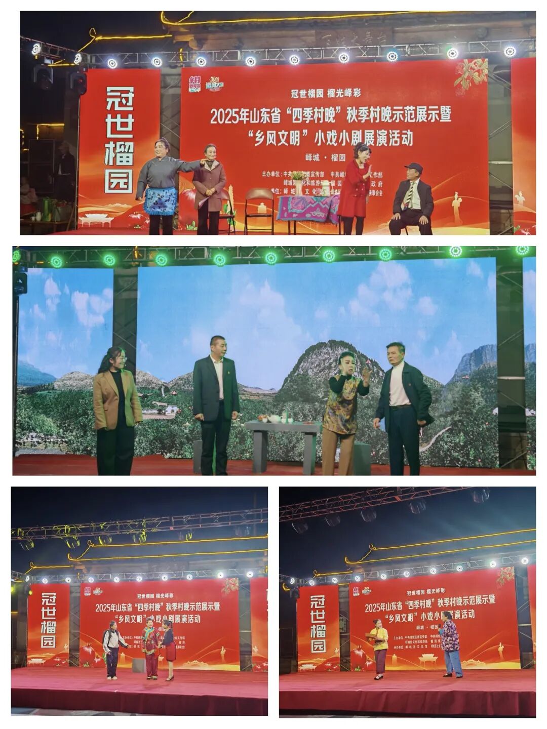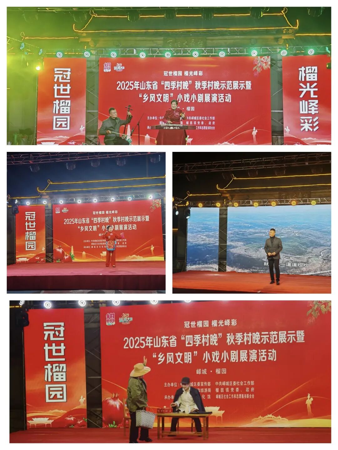 金秋送爽,榴果飘香。2025年11月6日,“冠世榴园 榴光峄彩”2025年山东省“四季村晚”秋季村晚示范展示点暨“乡风文明”小戏小剧展演活动在峄城区榴园镇朱村隆重举行。