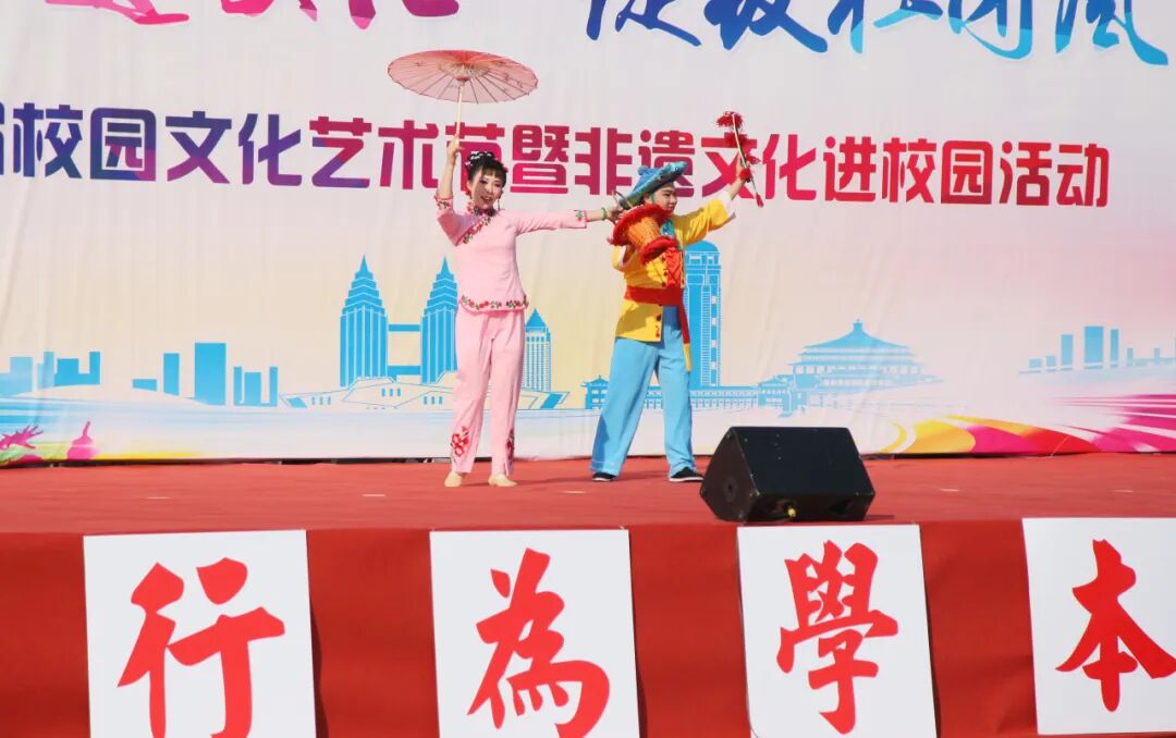 活动现场,文艺展演环节率先拉开序幕,经典柳琴戏《走娘家》登台亮相,婉转悠扬的唱腔搭配精湛传神的演技,赢得师生阵阵掌声,让大家近距离领略了地方戏曲的独特韵味。