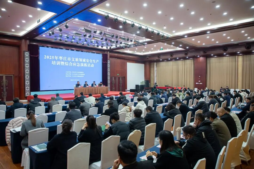 10月31日,全市文旅领域安全生产培训暨综合应急演练活动在台儿庄古城景区顺利举办。进一步压实文旅领域安全生产工作职责,增强文旅行业从业人员安全风险防范意识和应急处置能力,助推“消防宣传月”各项活动有序展开。各区(市)、枣庄高新区及重点文旅企事业单位相关负责同志100余人参加。
