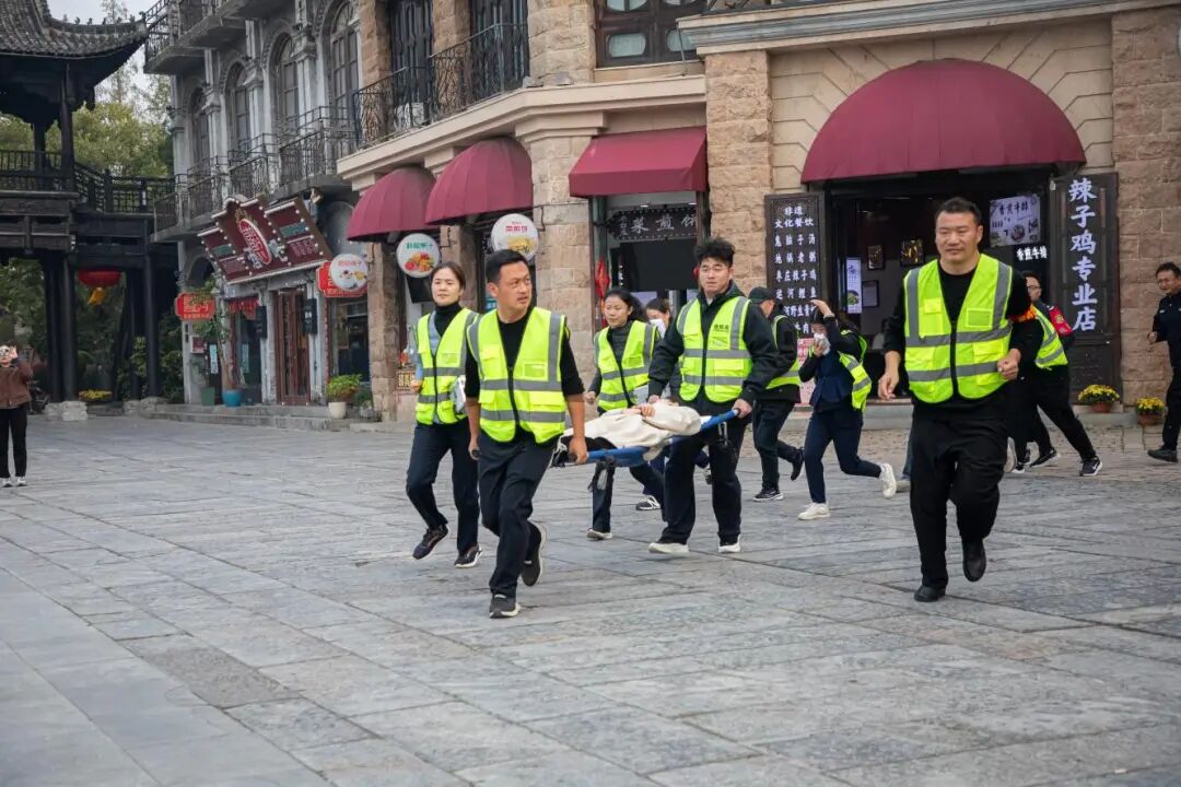 活动期间,市文化和旅游局按照全市安全生产重点工作部署会议要求,结合文旅领域四季度安全生产重点工作就压实工作职责、严查重大事故隐患、深入推进治本攻坚三年行动等重点工作作出全面部署。台儿庄古城景区就做好企业安全生产工作进行了经验分享交流,参训人员共同观看了山东省文化和旅游行业安全生产警示片。消防救援、应急等有关行业专家就文旅安全生产工作实务、消防安全“四个能力”、突发事件应急处置与医疗急救技能等内容进行了专题授课辅导。在现场综合应急演练中,台儿庄古城景区以突发火灾、游船抛锚、游客被困、人员受伤为背景,围绕应急疏散、消防灭火救援、医疗救护等科目开展现场综合应急演练。
