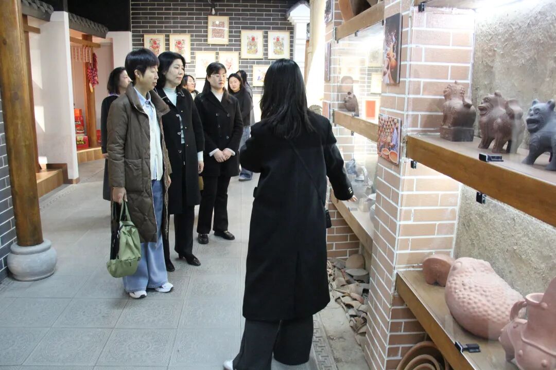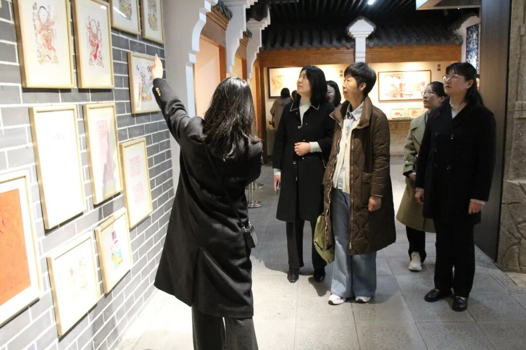 活动伊始,女职工们走进非遗展厅,开启了一场别样的非遗探寻之旅。展厅内,鲁南剪纸、泥沟青花布印染等枣庄本土非遗技艺精品错落陈列,每一件作品都凝聚着匠人的坚守与匠心。在讲解员的细致解读下,大家深入了解各项非遗技艺的起源、传承脉络与发展现状,真切感受枣庄本土文化的深厚底蕴,进一步筑牢文化自信,增强了身为文旅人的文化传承使命感与责任感。