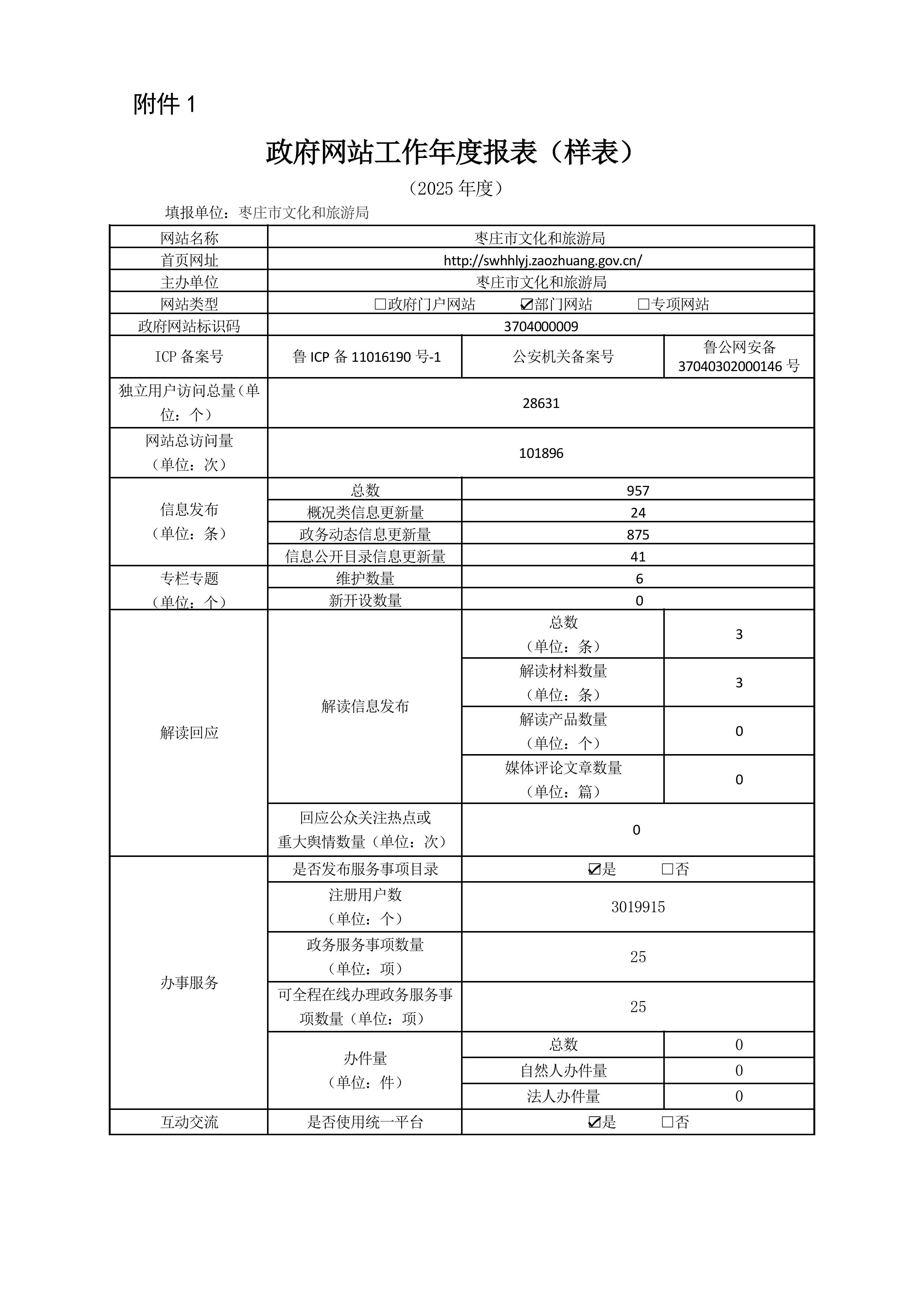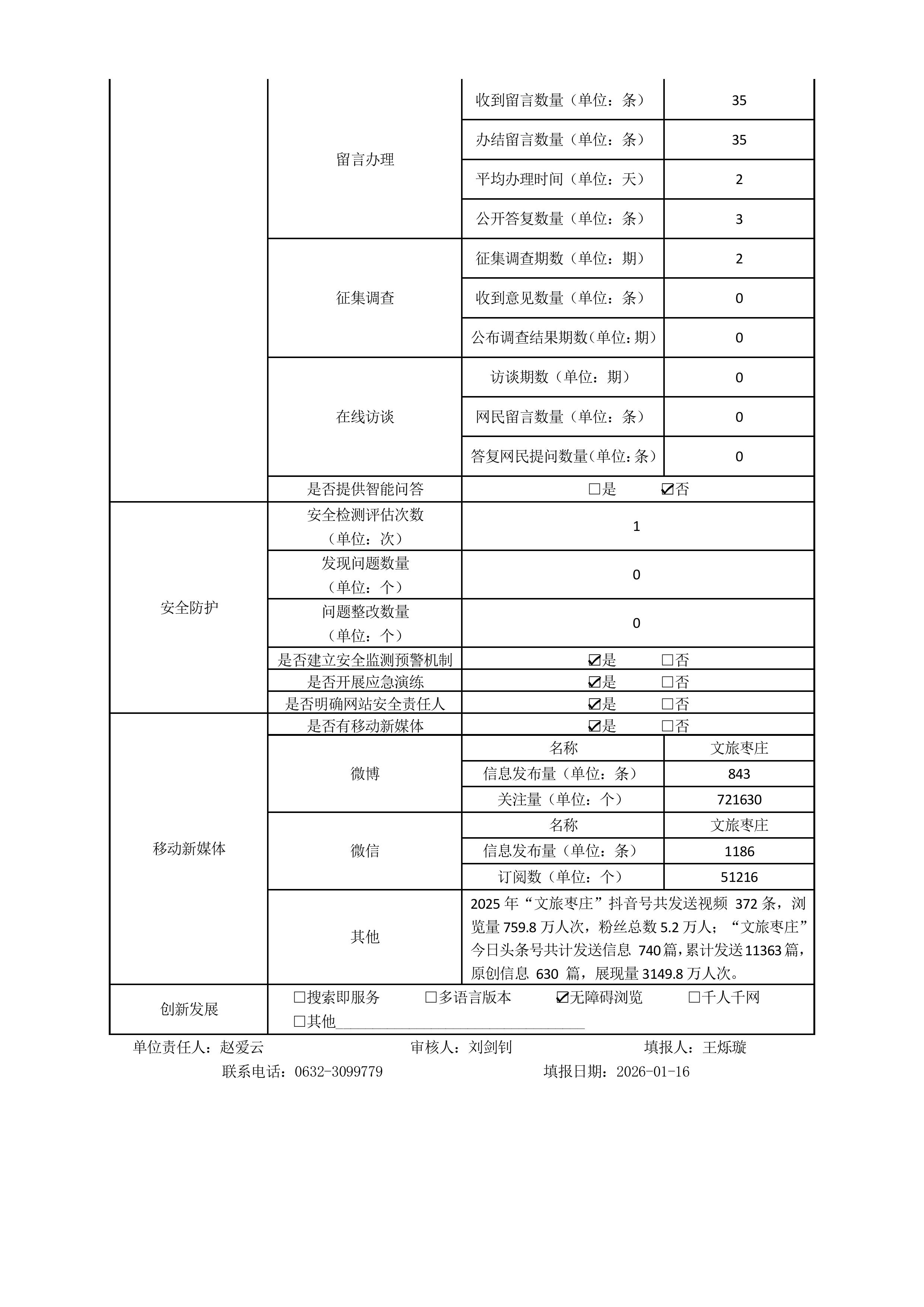 枣庄市文化和旅游局政府网站工作年度报表(2025年度)