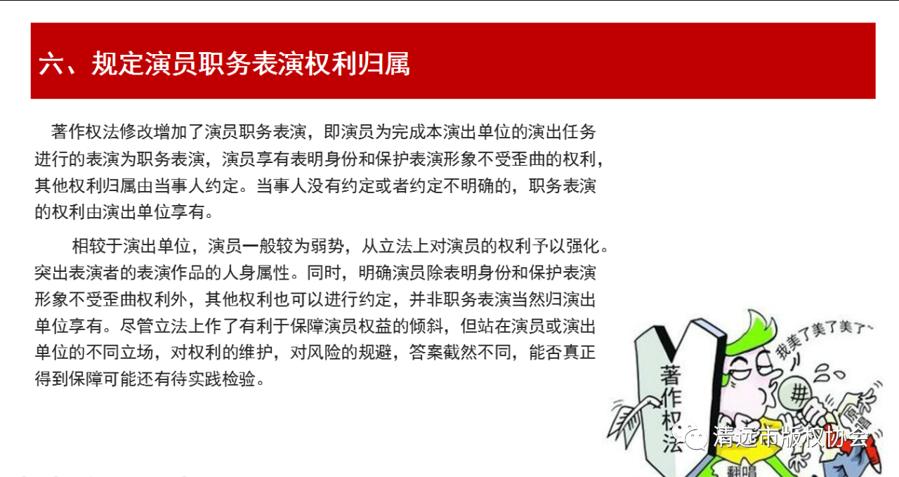 2020年11月11日,中华人民共和国第十三届全国人民代表大会常务委员会第二十三次会议通过了《全国人民代表大会常务委员会关于修改<中华人民共和国著作权法>的決定》(以下简称“新修订《著作权法》”)。新修订《著作权法》共6章67条,将于2021年6月1日起施行。
