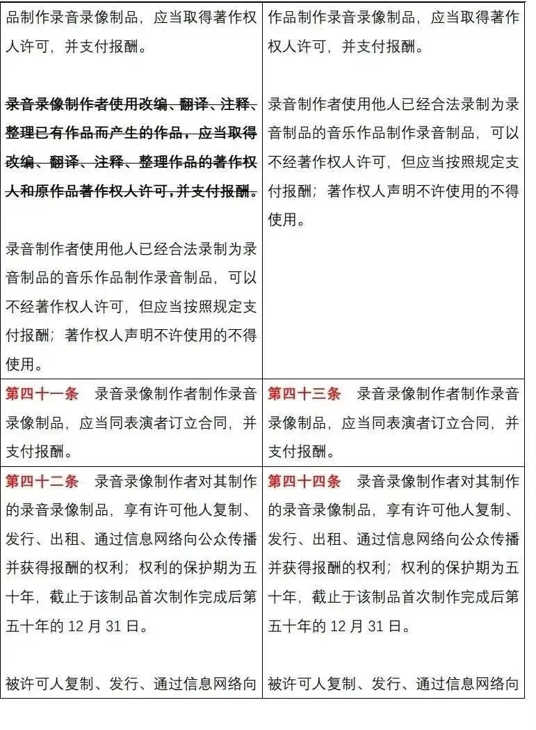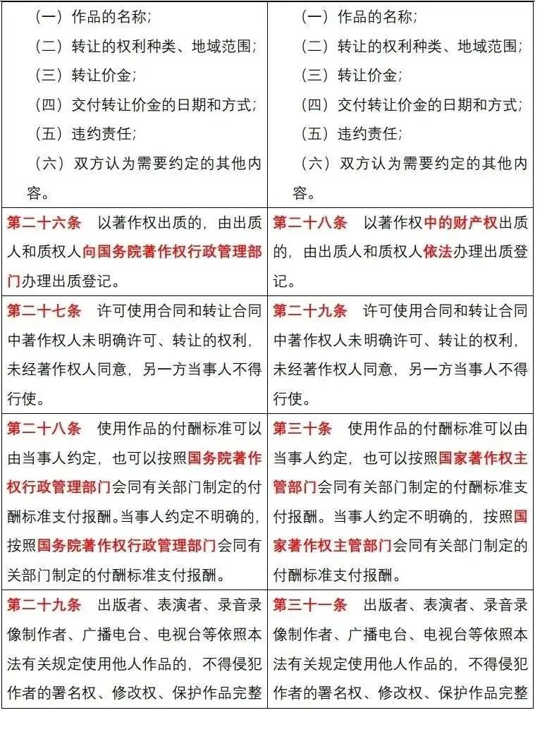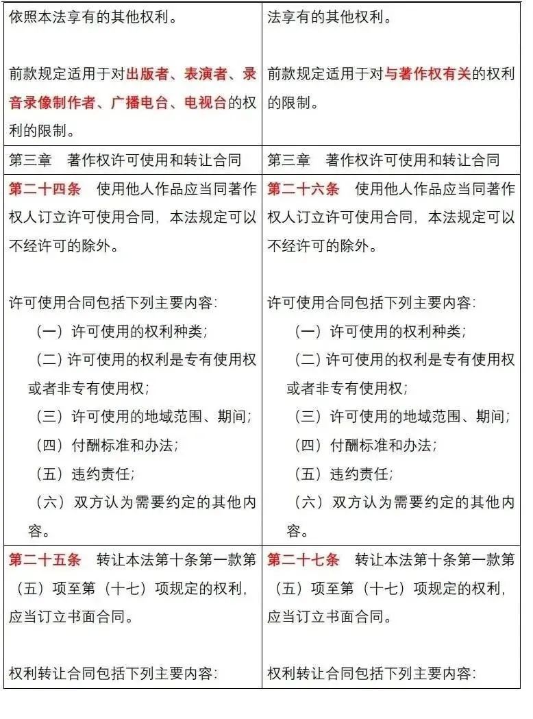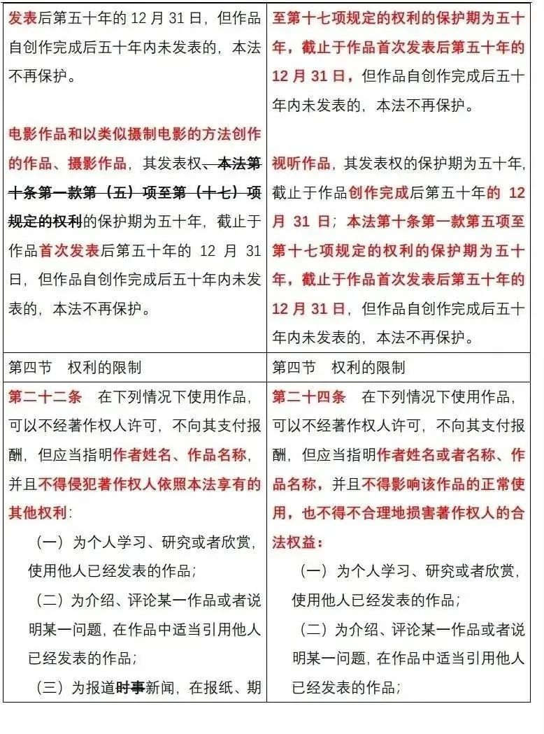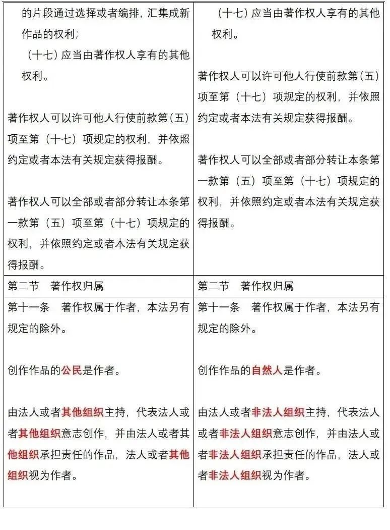 《中华人民共和国著作权法》修改前后对照表
