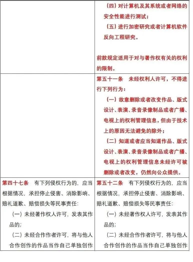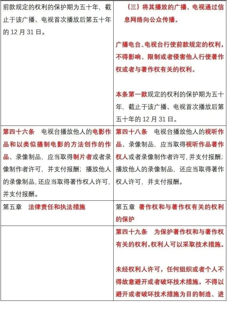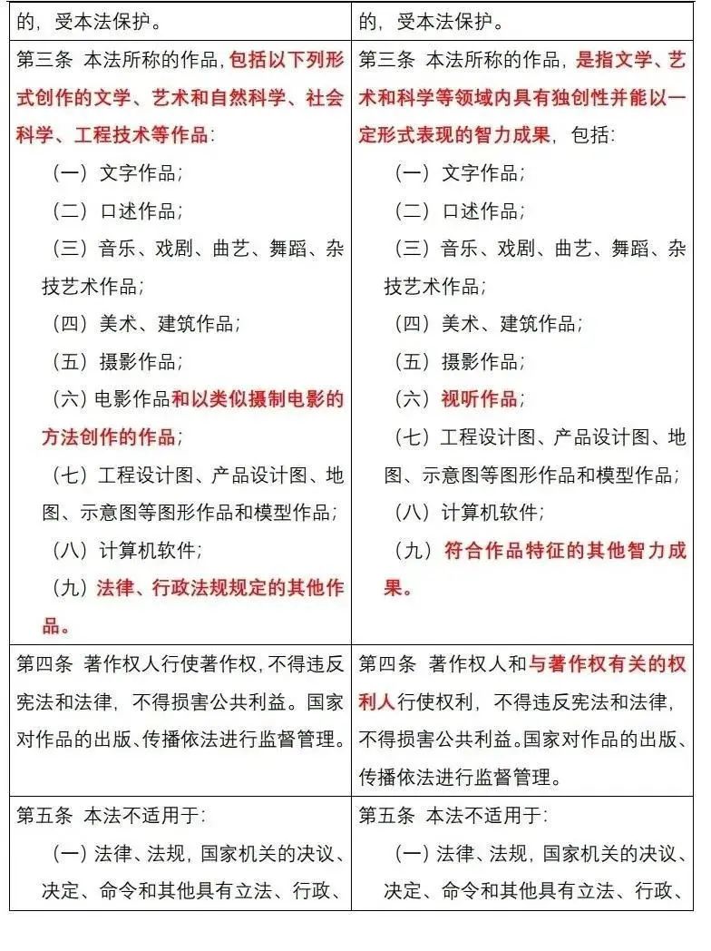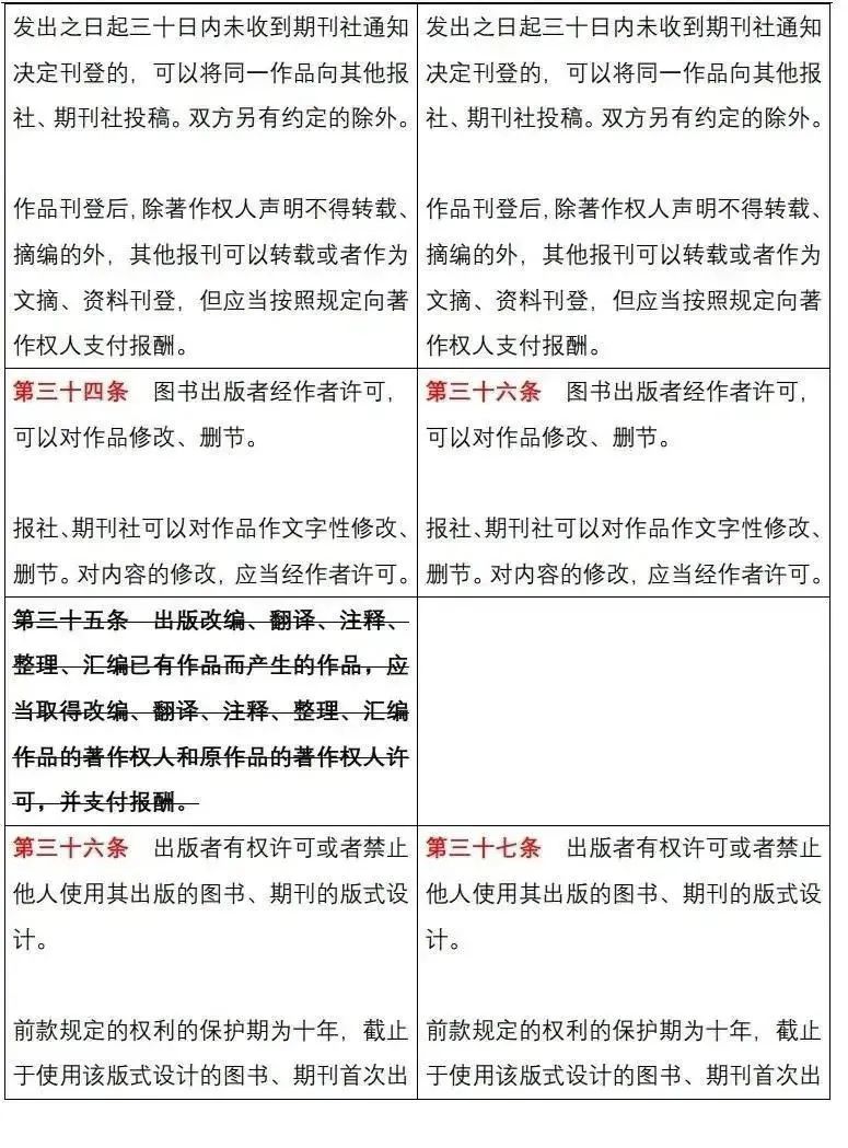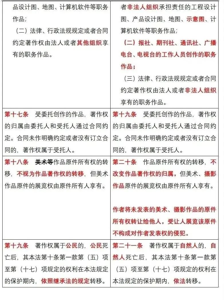 《中华人民共和国著作权法》修改前后对照表
